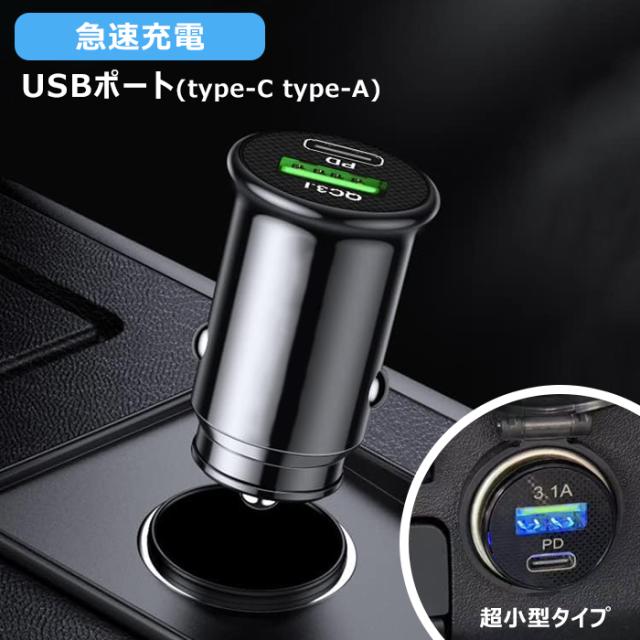車載 小型 USBポート 3.1A シガーソケット type-C type-A 新品 PD QC 急速充電 カーチャージャー タイプ C A ブラック 汎用 12V 24V 対応