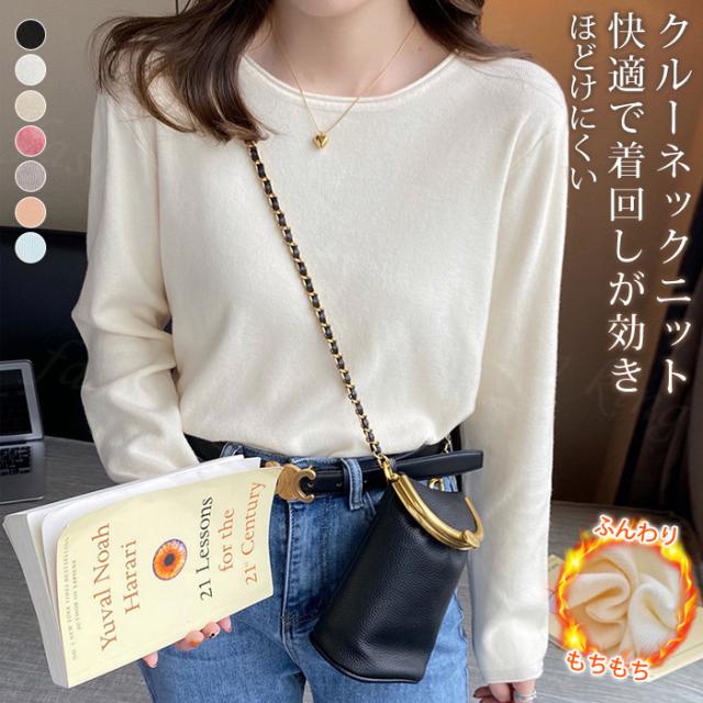<1点999円!2点購入&クーポンで>ニット 長袖 レディース 洗える 秋 秋冬 トップス セーター クルーネック プルオーバー チュニック 無地 薄手 着痩せ 可愛い 柔らかい チクチクしない ゆったり 通勤 通学