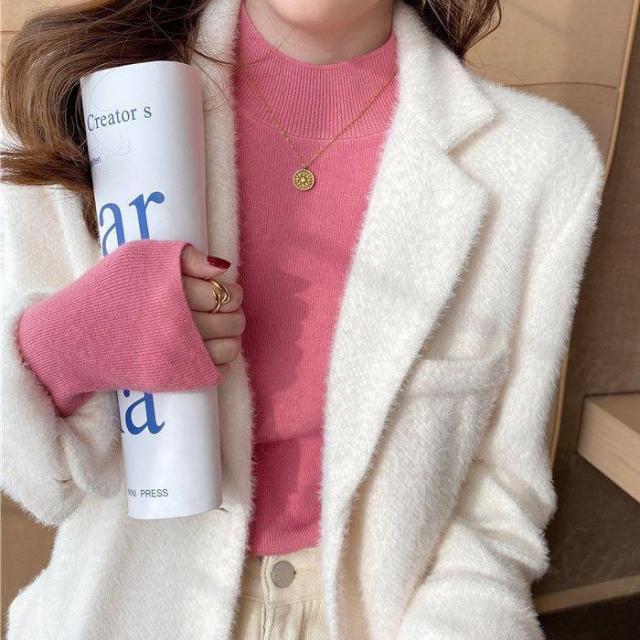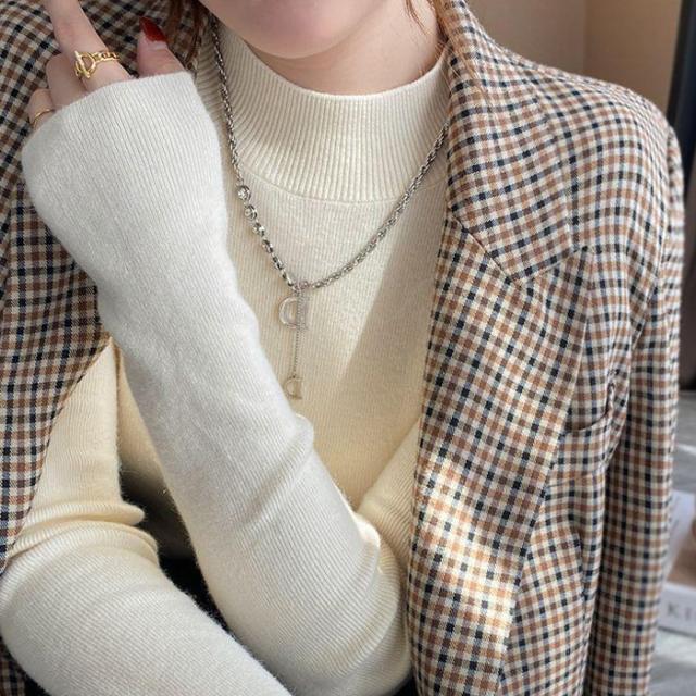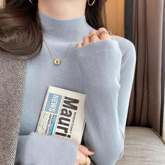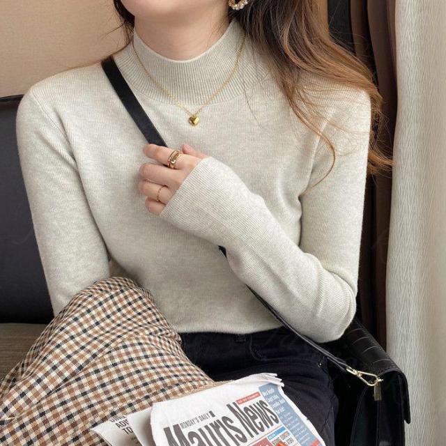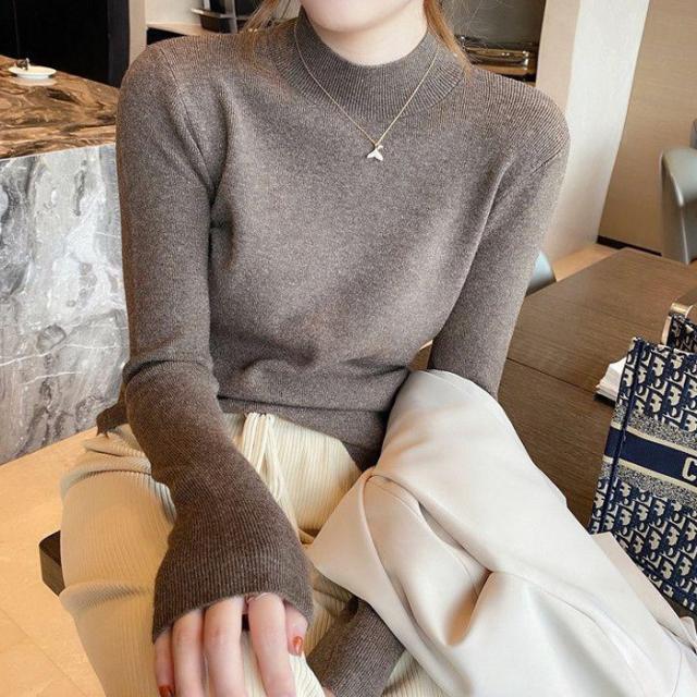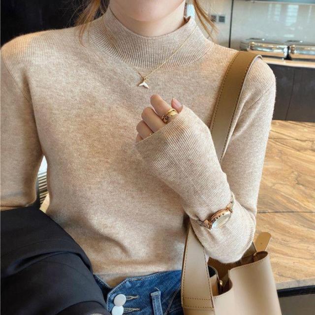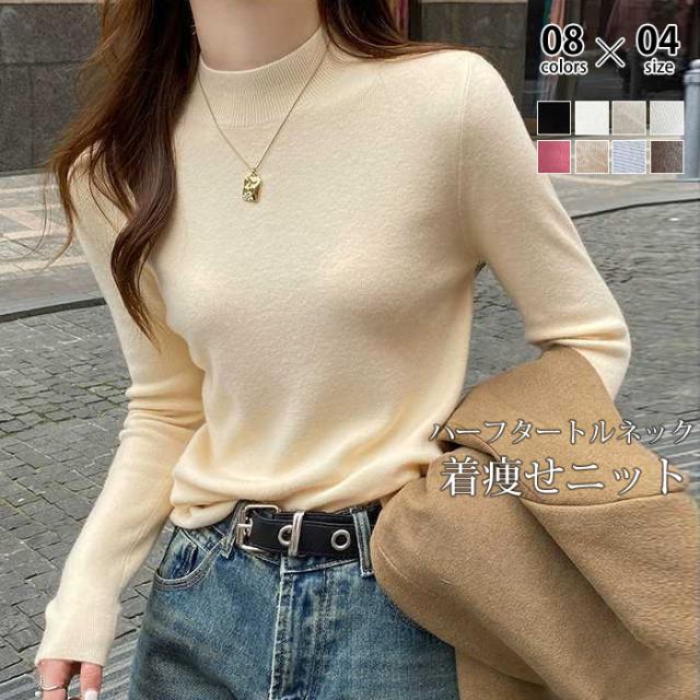 <1点999円!2点購入&クーポンで>ニット レディース トップス 長袖 ハーフタートルネック リブ シンプル 定番 スタンダード ベーシック 着回し カジュアル 秋 冬 無地 薄手 着痩せ 可愛い 柔らかい チクチクしない ゆったり 通勤 通学