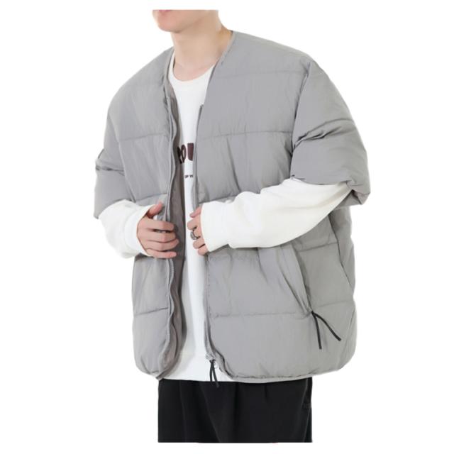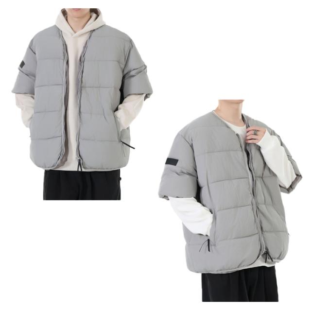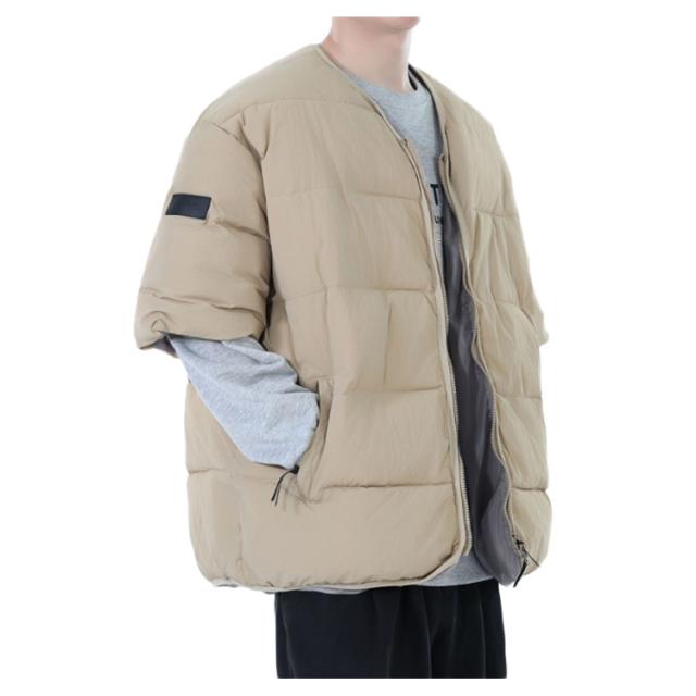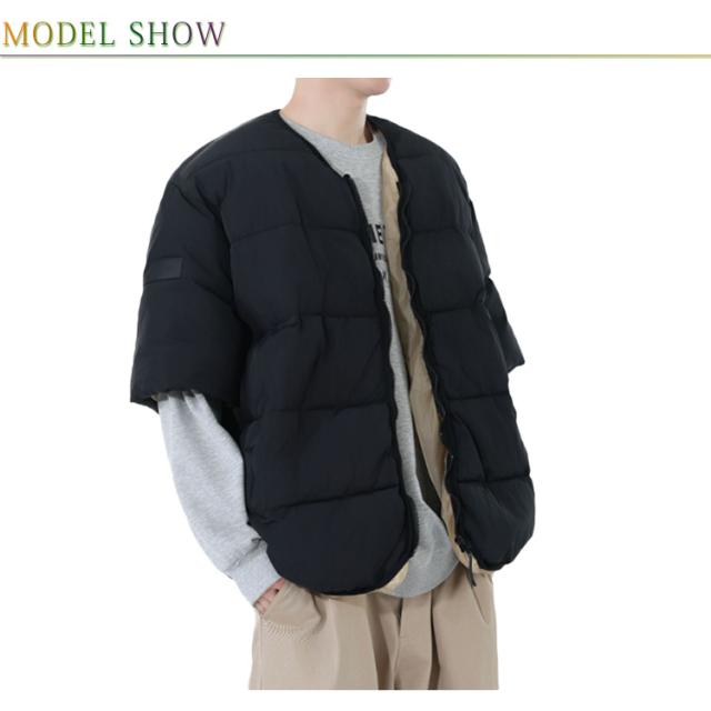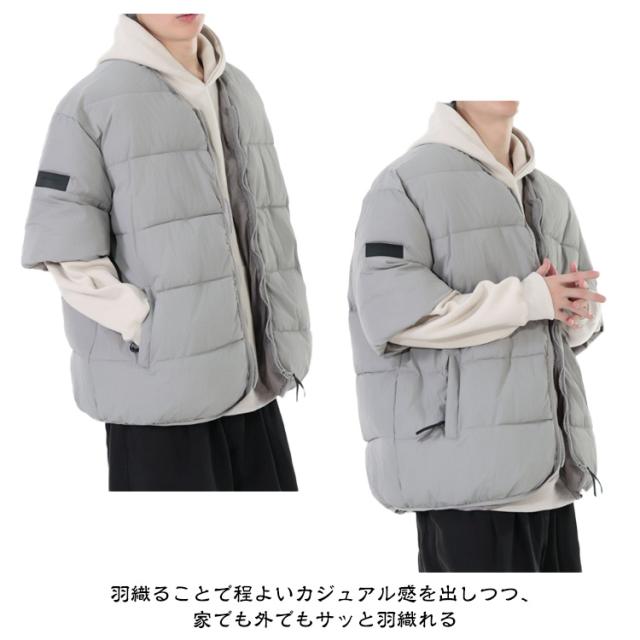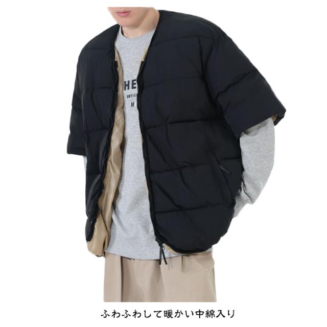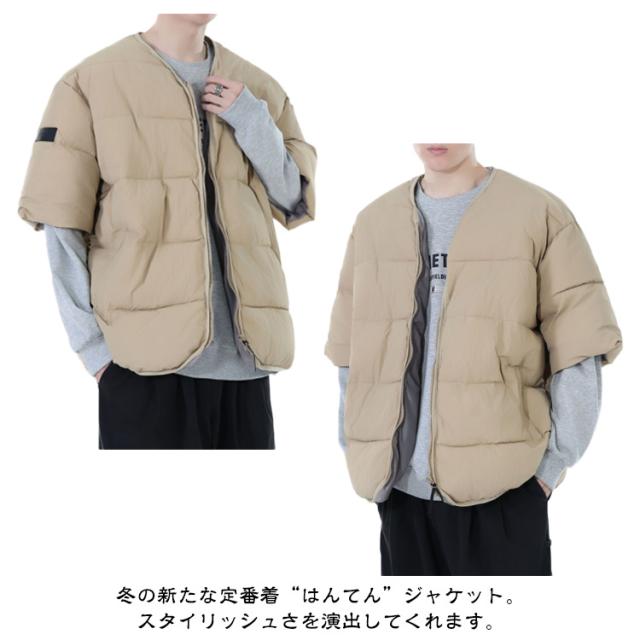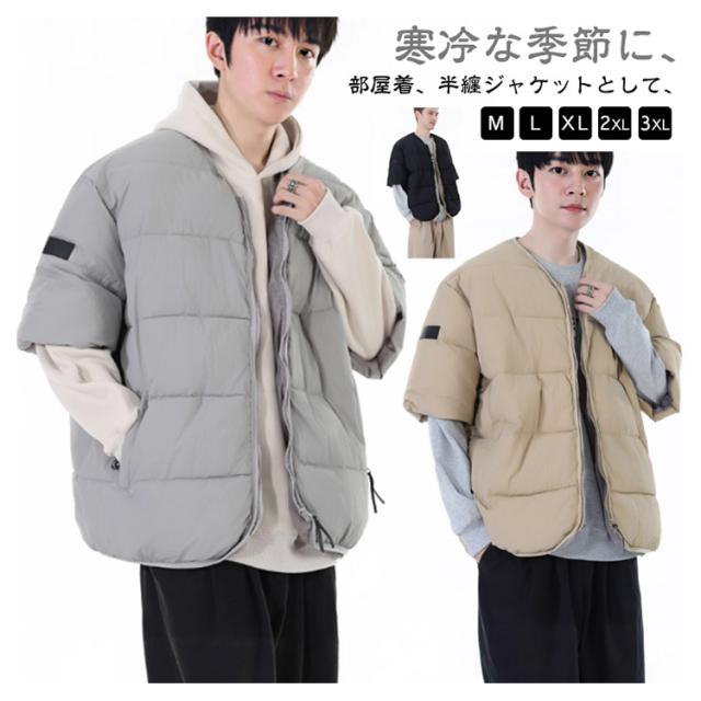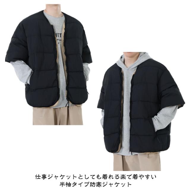 メンズ 防寒ジャケット 通勤 男性用 羽織り 中綿入り 半袖 防寒着 中綿ジャケット 羽毛 五分袖 半袖 カジュアル服 お出かけ オシャレ 暖かい 中綿コート 秋冬物 外出着 羽織り アウター キルティングジャケット メンズ ノーカラー防寒ジャケット