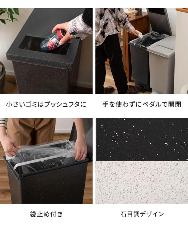 キーワード: ゴミ箱 45リットル おしゃれ 分別 ごみ箱 プッシュ型 ペダル型 ダストボックス 蓋付き キッチン 45L フタ付き 縦型 シンプル 北欧 韓国 コンパクト 石目調 ブラック