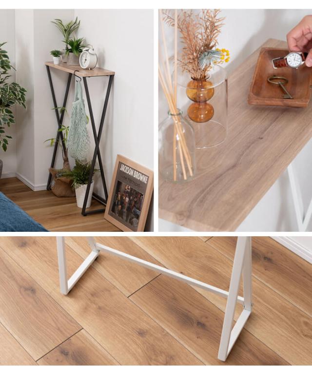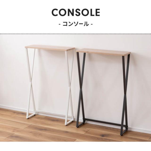 キーワード: コンソール テーブル 机 スリム 省スペース コンパクト 玄関 木目調 スチール脚 サイドテーブル リビング シンプル ミニテーブル 黒 おしゃれ ハイタイプ
