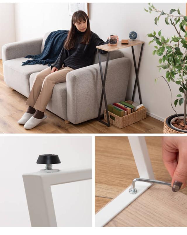 | スリム設計で廊下や玄関のディスプレイに最適なコンソール。 奥行19cmとスリム設計で、置く場所を選ばず様々なシーンで活躍。 木目調の天板とスチール脚で構成されたシンプルなデザイン。 脚裏にはアジャスターが付いているので、高さの微調節ができガタつきを軽減します。 |