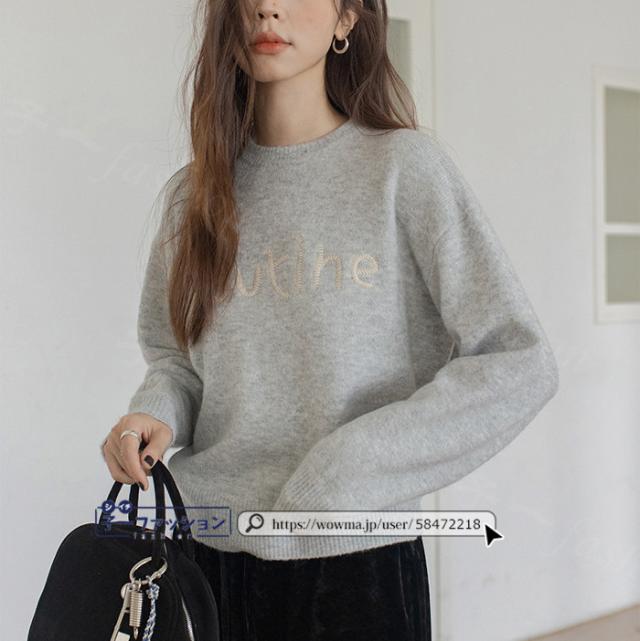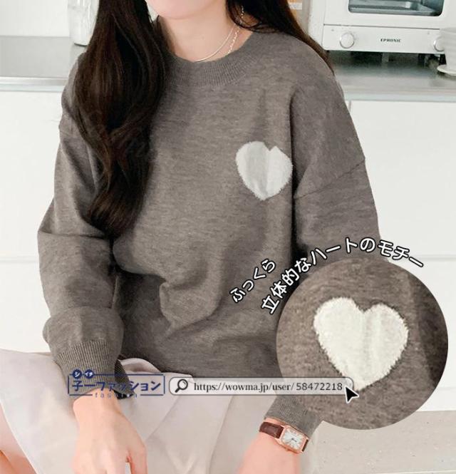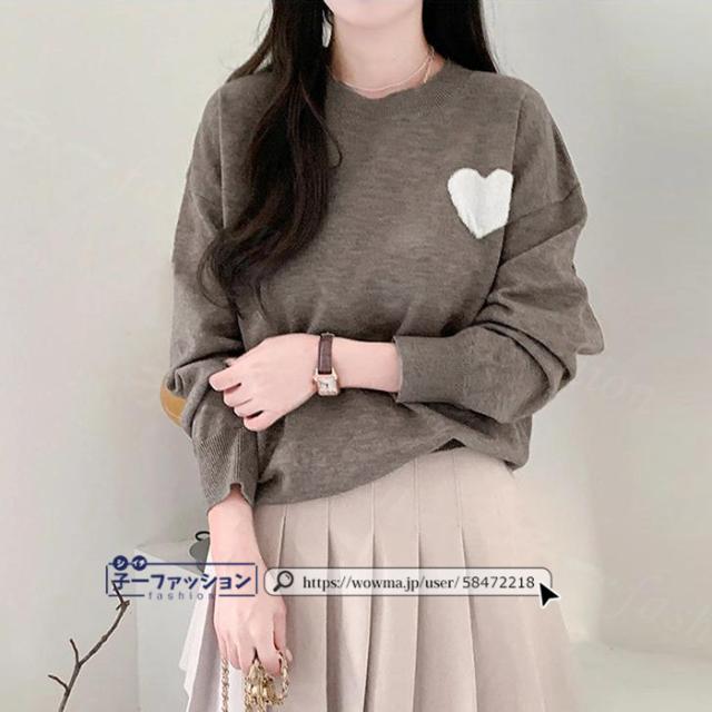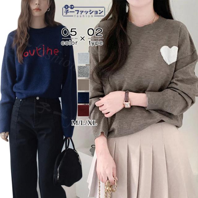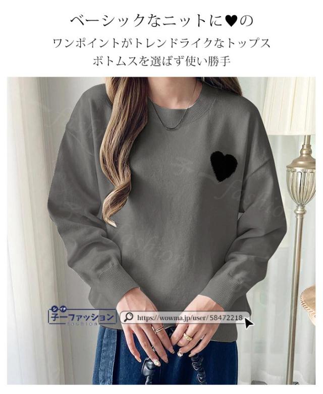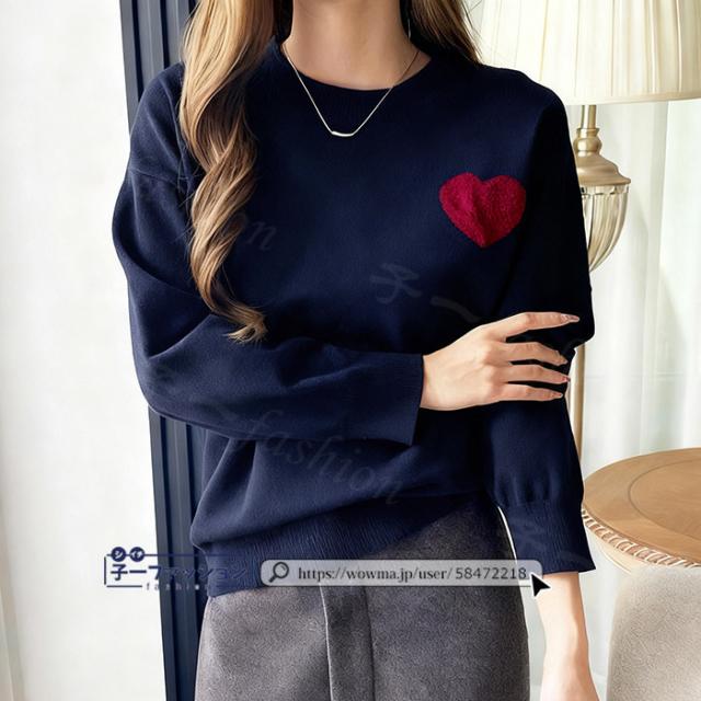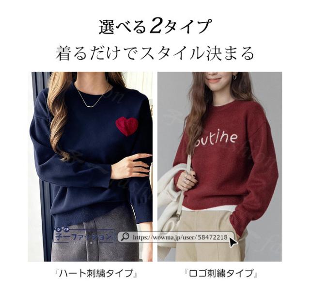 <1点3,550円!クーポン利用で> ニット セーター ハートニット プルオーバー 冬新作 新作 ラウンドネック 刺繍 長袖 トップス ニットトップス トップス レディース 柔らかい 大人可愛しい ジュアル おしゃれ きれいめ カジュアル 着痩せ 無地 送料無料 春 秋 冬