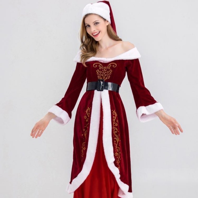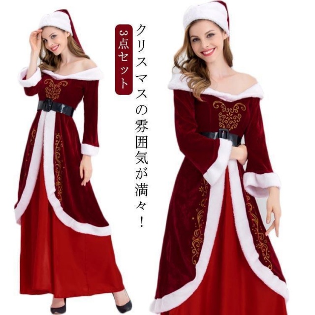 サンタ コスプレ レディース ロング ワンピース 帽子 マント クリスマス コスプレ サンタクロース 仮装 大きいサイズ 演出服 イベント送料無料