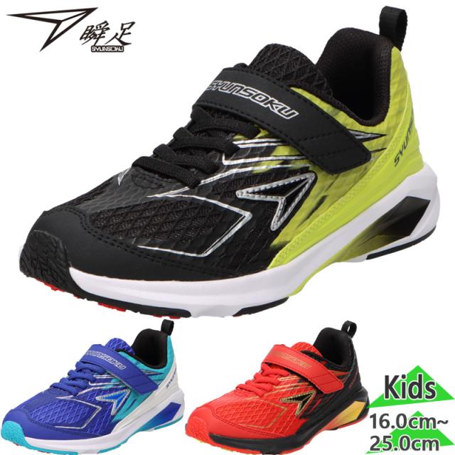 3E 幅広 ワイド 瞬足 ジュニア キッズ 男の子 女の子 靴 シューズ ランニングシューズ スニーカー マジックテープ ベルクロ 通学 運動 ブラック 黒 ブルー 青 送料無料 syunsoku SJJ2330