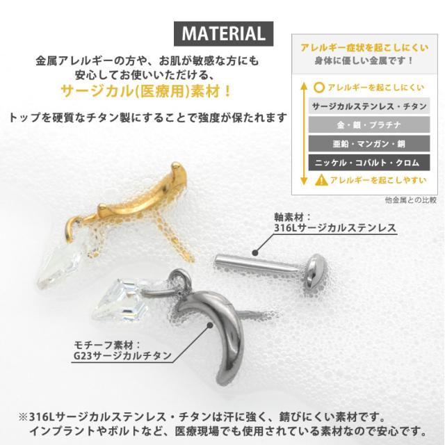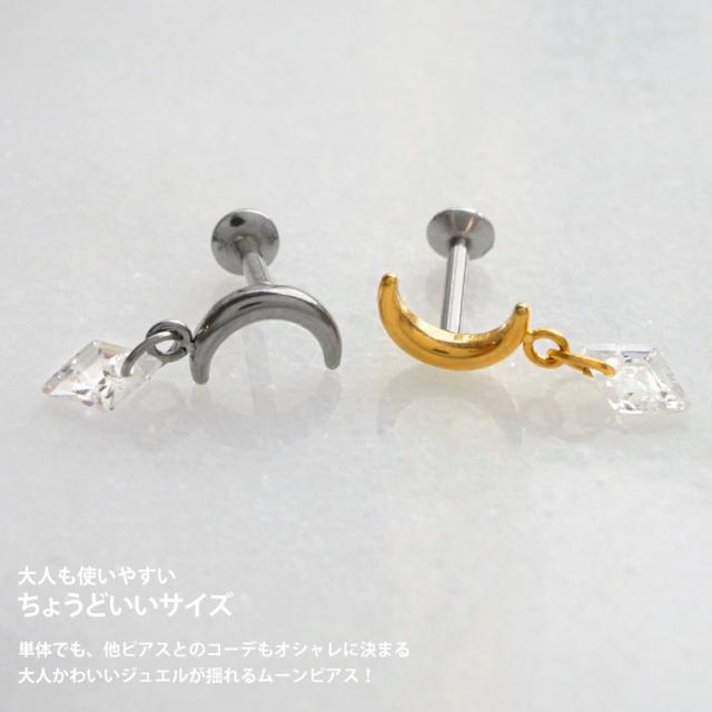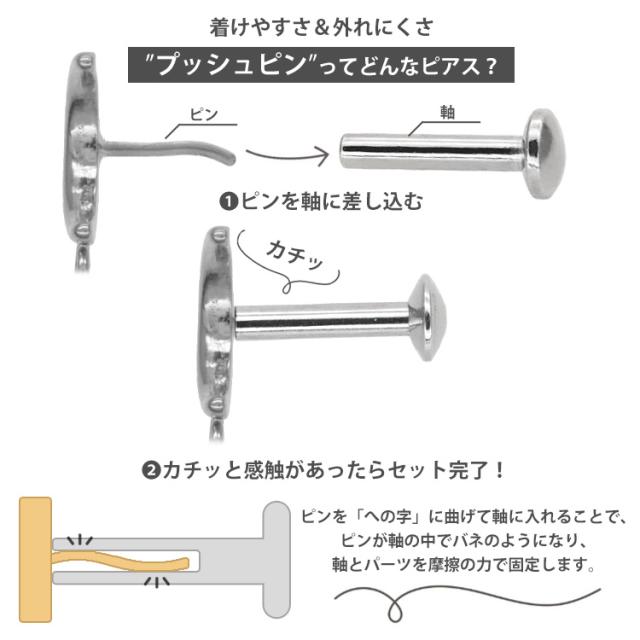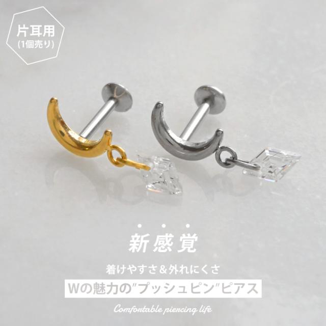 【ネジ不要/摩擦でロック】つけっぱなしピアス ボディピアス 20G 18G 16G ジュエルチャームムーンプッシュピンラブレット トラガス 軟骨ピアス 【片耳用】 【30日間お試し期間あり/返品交換保証】