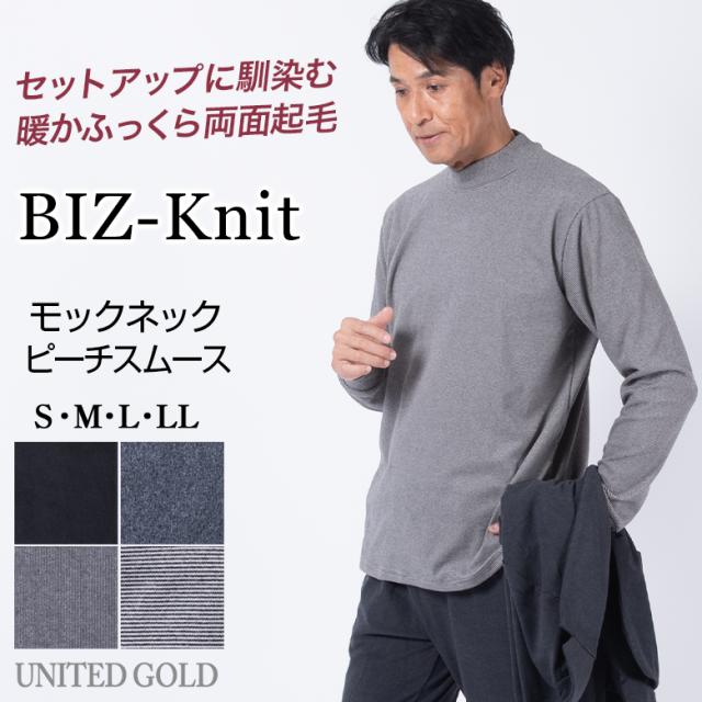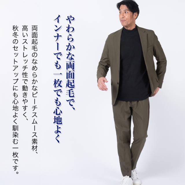 メンズ 長袖 ビズT ピーチスムース 両面起毛 伸縮 ストレッチ インナー セットアップにも