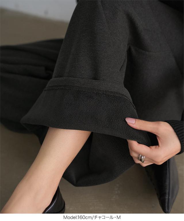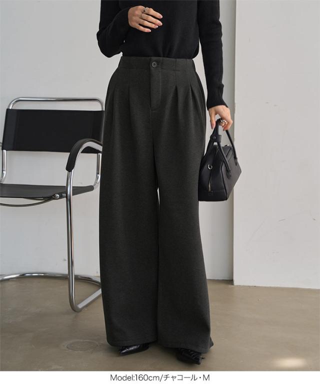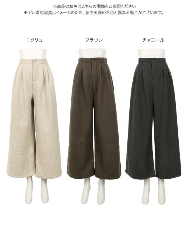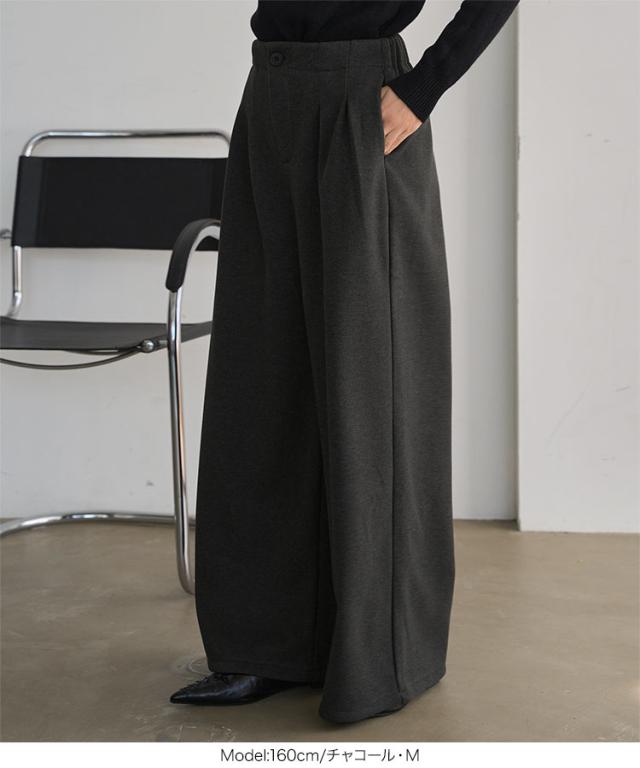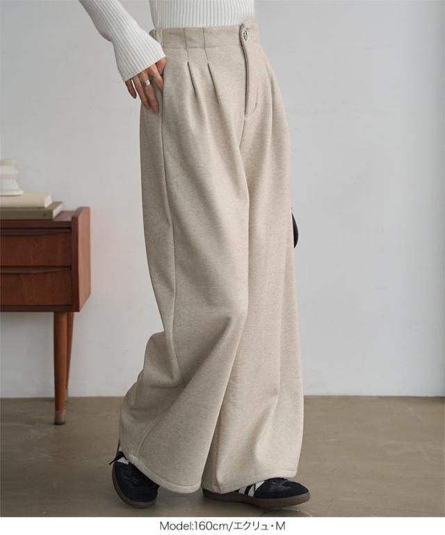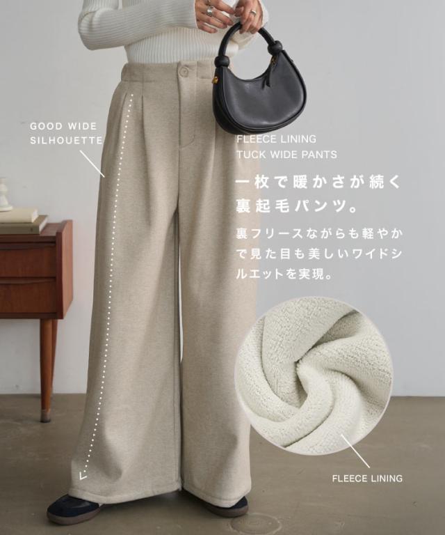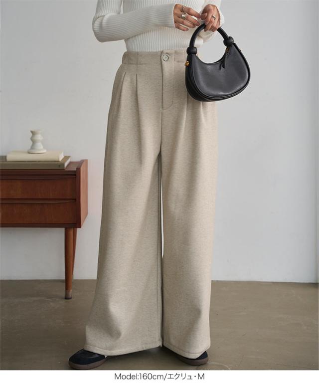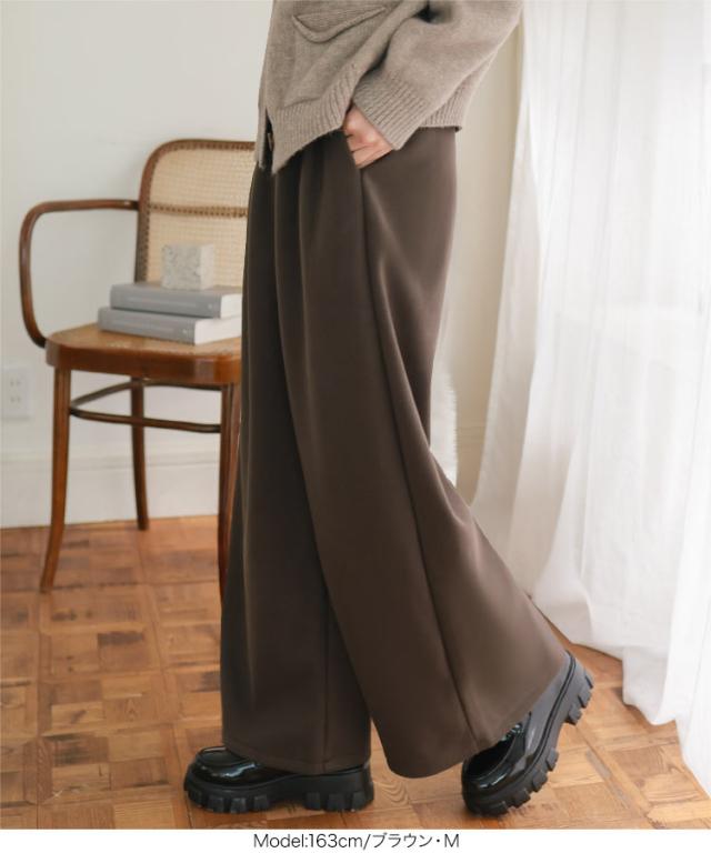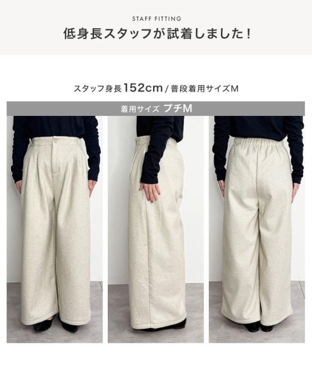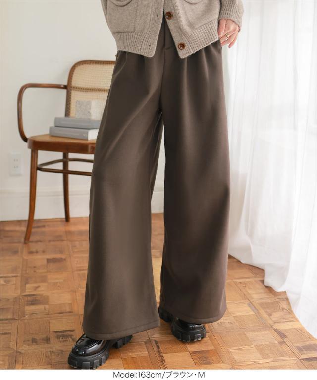 [ 裏起毛 ] 裏フリースタックワイドパンツ M4339 入荷済 レディース 20代 30代 40代 パンツ ワイドパンツ 裏起毛 裏フリース 暖か 冬パンツ 冬ボトム 低身長 ゴム ストレートパンツ フリー レタスオリジナルサイズ