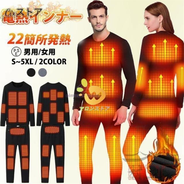 レディース メンズ 電熱ズボン 速暖 防寒着 ヒーター付き パンツ 長袖 電熱トップス 上下セット ヒーター22個 22箇所発熱 電熱インナーウェア