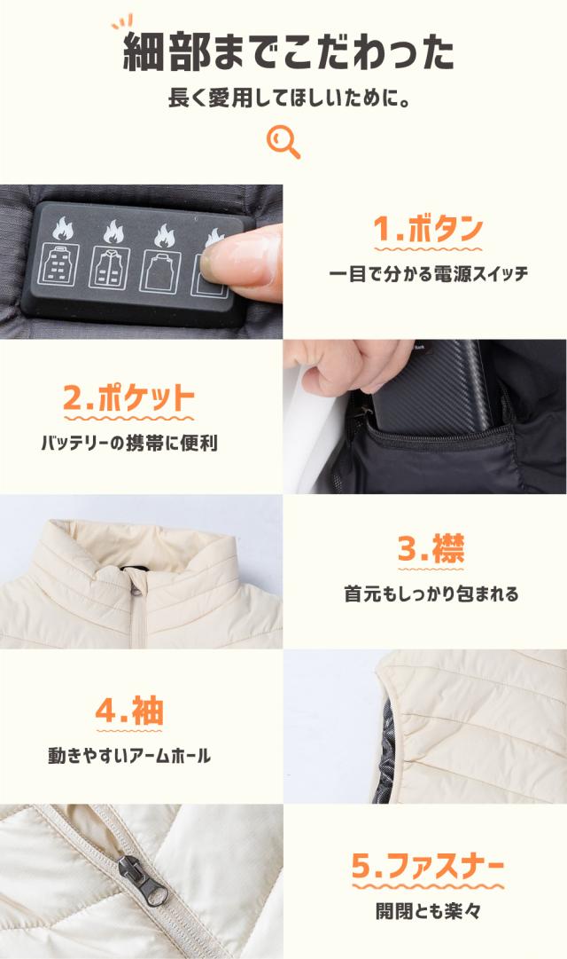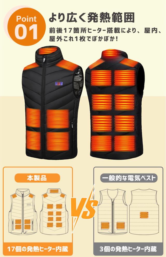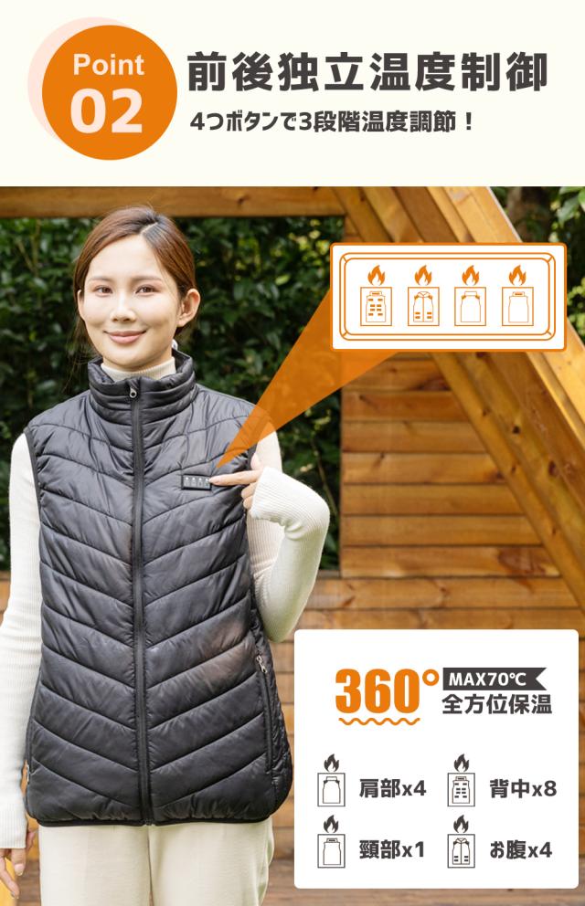 電熱ベスト バッテリー付き ヒーター 前後独立温度設定 USB給電 メンズ レディース 3段階 アウトドア 水洗い可能