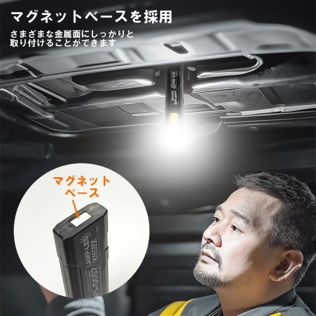 ワークライトはマグネットベースを採用しており、さまざまな金属面にしっかりと取り付けることができます。