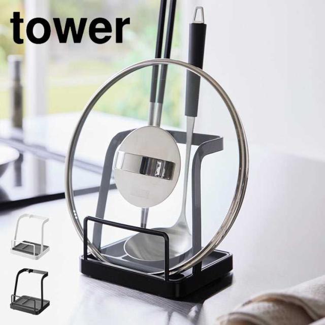 山崎実業 お玉&鍋ふたスタンド L タワー 1551 1552 tower 鍋ふた置き おしゃれ お玉置き おたま置き 菜箸置き 便利グッズ お玉ホルダー キッチンツールスタンド 調理器具 立てかけ 一時置き スタンド 収納 キッチンツール ホワイト ブラック 白 黒 シンプル お玉立て トレー