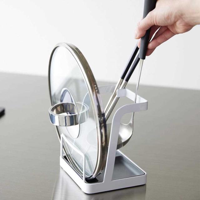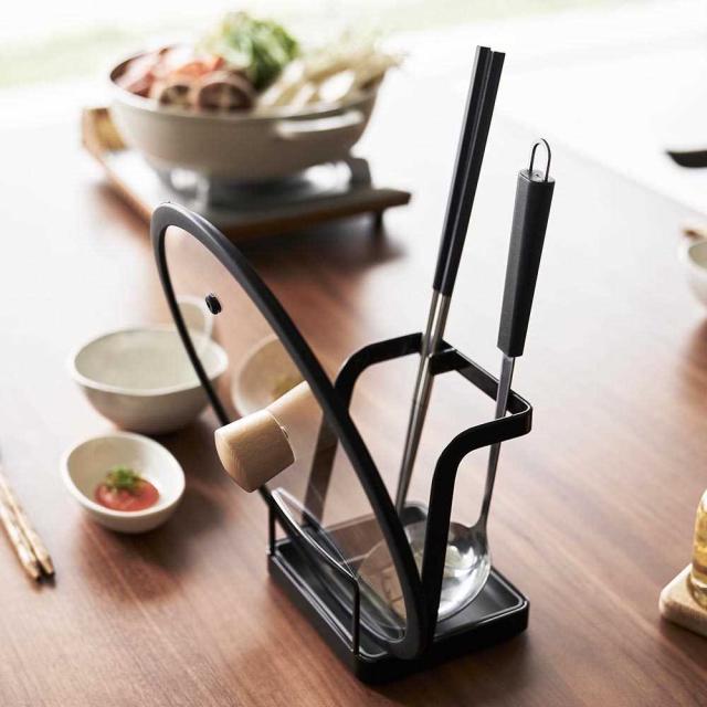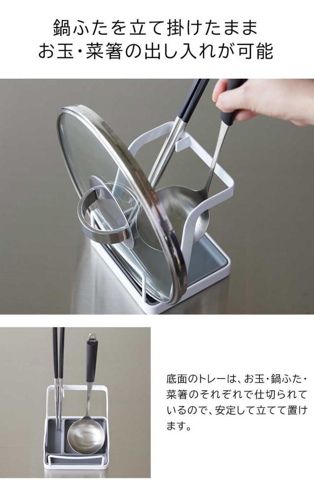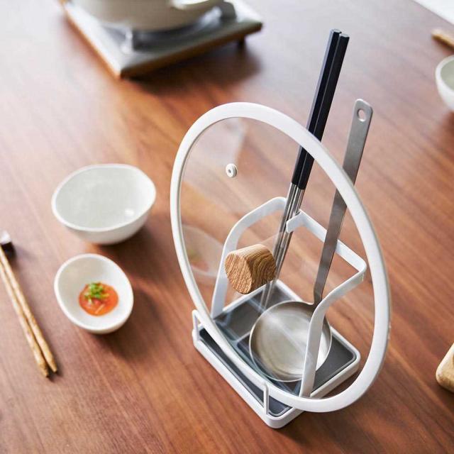 料理中置き場所に困るキッチンツールがまとめて置ける、便利なスタンド。大きめの鍋ふたも立てておけるワイドなサイズです。鍋ふたを立てたままでもお玉・菜箸がサッと置けてサッと取れます。トレーは取り外しでき食洗機対応でお手入れ簡単!お料理時間をより快適に。