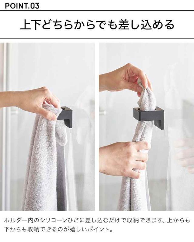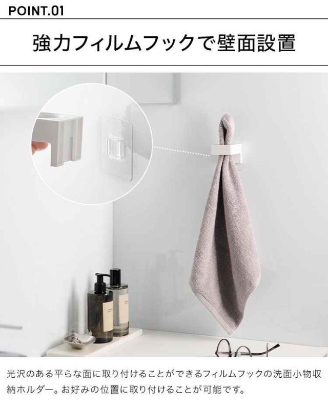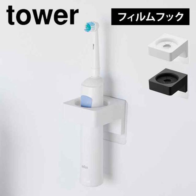 山崎実業 フィルムフックサニタリーホルダー タワー 1709 1710 tower 洗面 小物 収納 タオル掛け タオルホルダー 電動歯ブラシ ヘアアイロン スタンド 壁掛け 壁面収納 タオルフック バスタオル 浮かせる収納 ホワイト ブラック シンプル 衛生 すっきり 整理整頓 おしゃれ