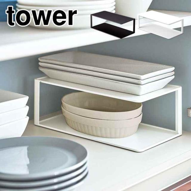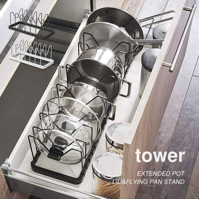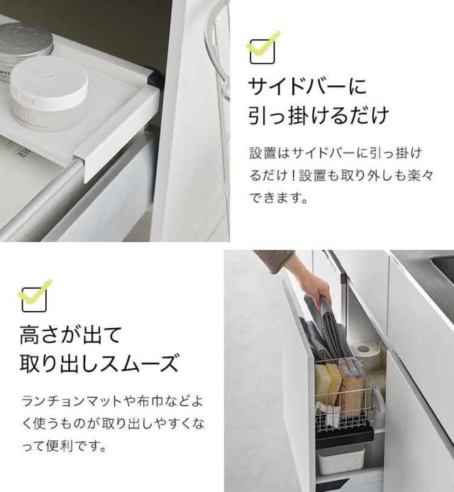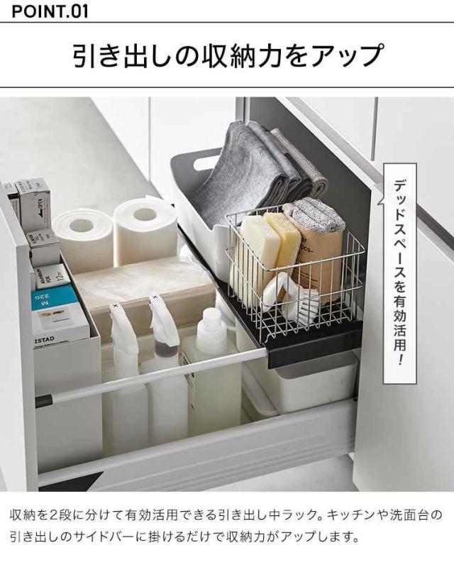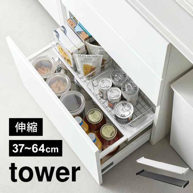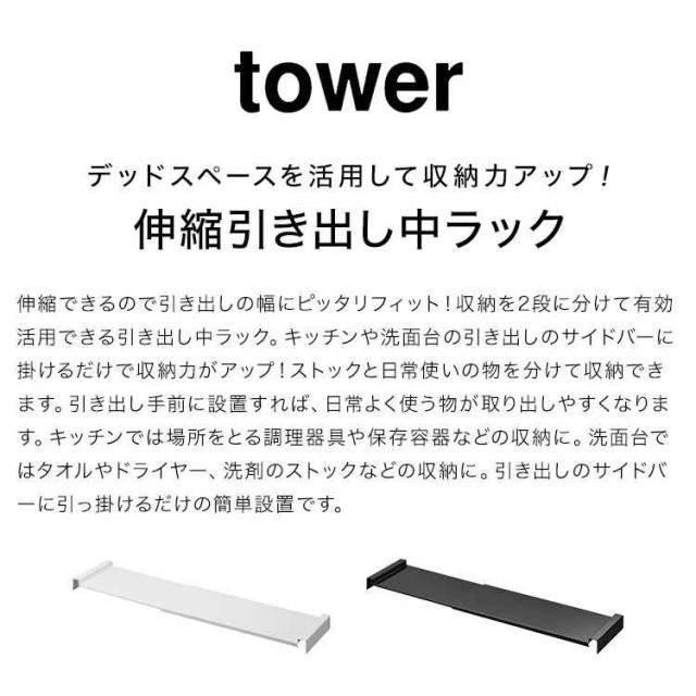 山崎実業 伸縮キッチン引き出し中ラック タワー tower 1729 1730 シンク下 収納 伸縮 ラック 2段 スライド 引き出し用 後付け 棚 引っ掛け 調理器具 食品 ストック 台所用品 洗面所 洗面台 整理整頓 シンプル 隙間収納 便利 おしゃれ 白 黒 デッドスペース 有効活用 すっきり