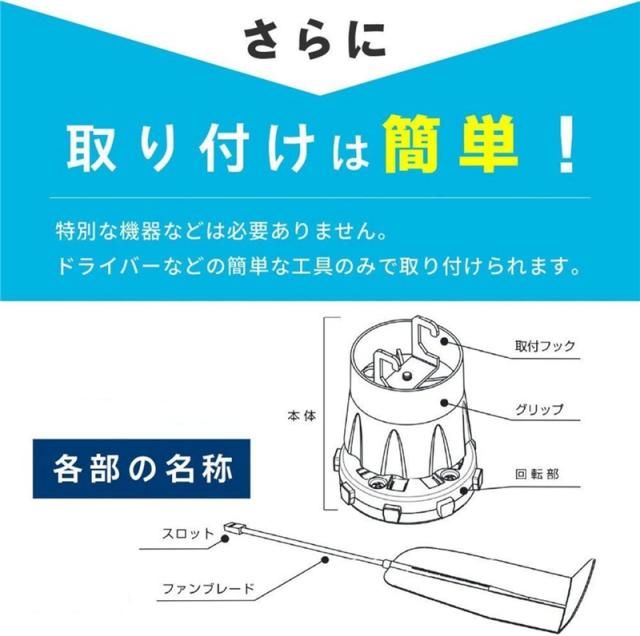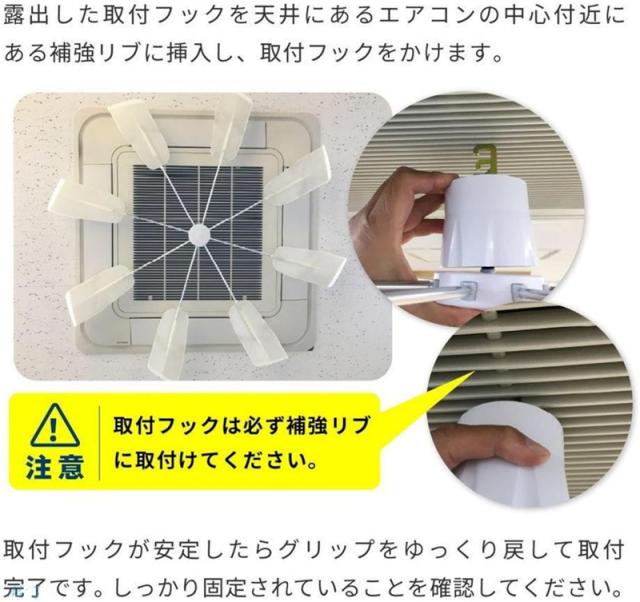 【簡単な取り付け】工具不要の簡単取り付け。 エアコングリルにはめ込むだけで取り付け完了。 固定用のネジや穴が不要で、天井や壁を傷つけません。 とても便利です。
