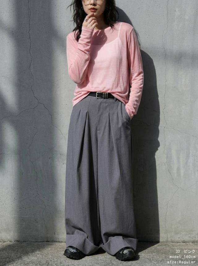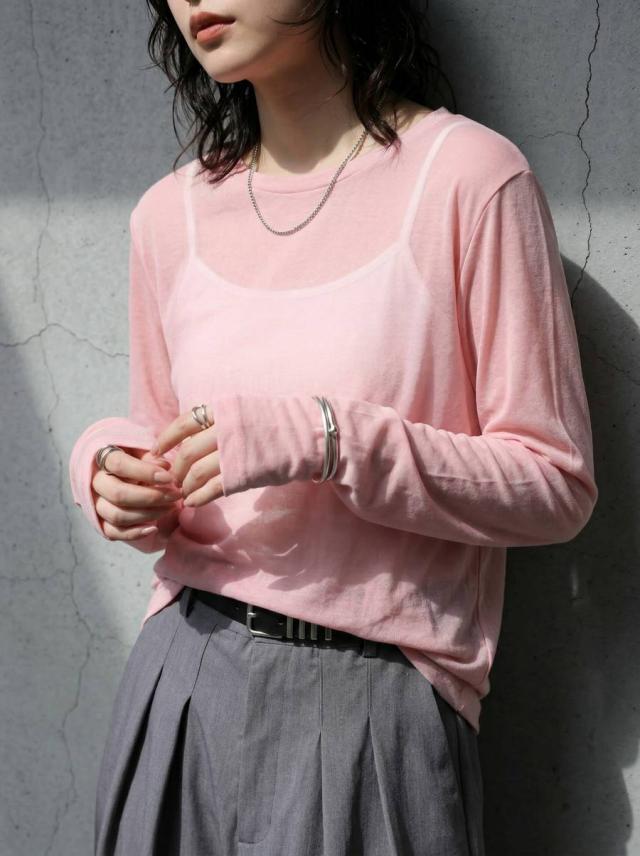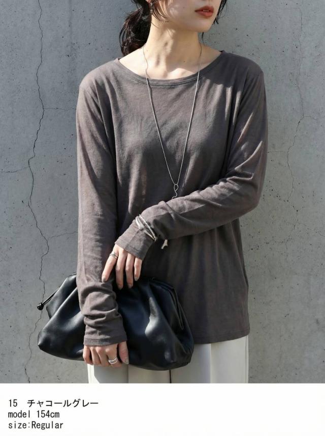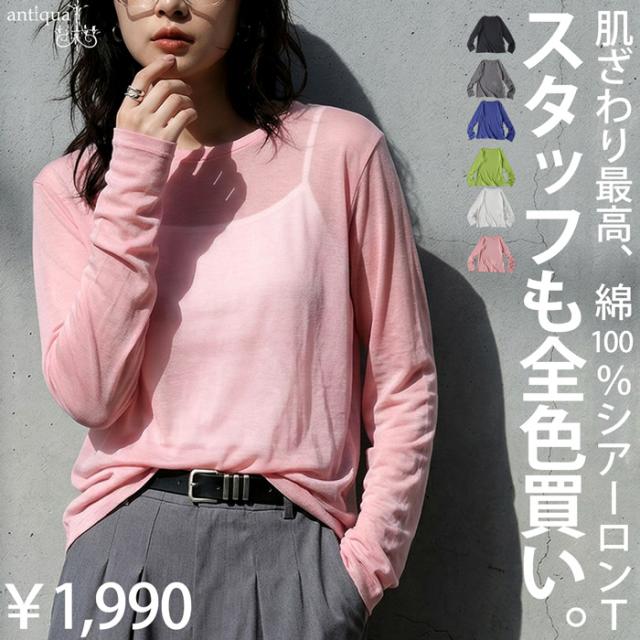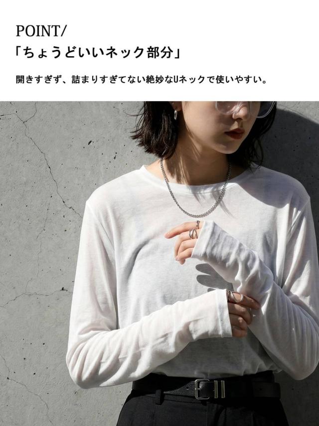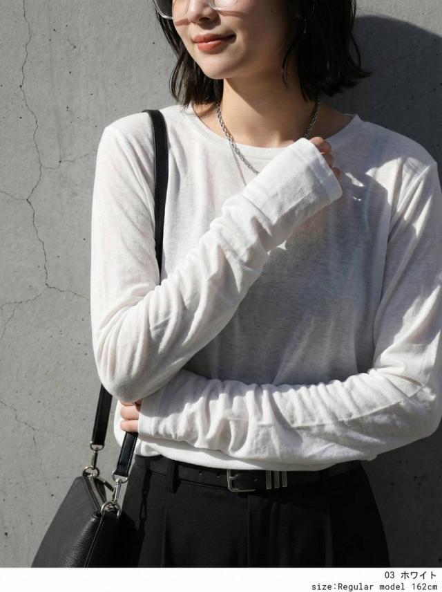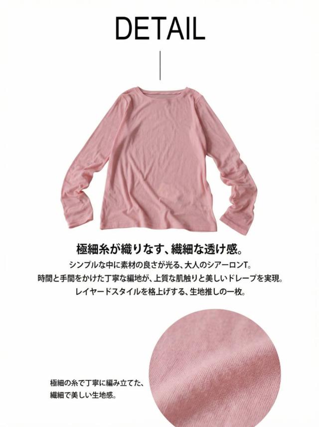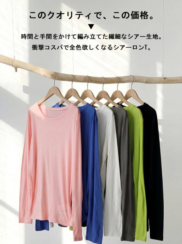 pn-00609 無地 シアー ロンT インナー トップス 薄手 透け感 コットン レイヤード 重ね着 軽やか 柔らかい シンプル 着回し デイリー コーデ ナチュラル カジュアル きれいめ