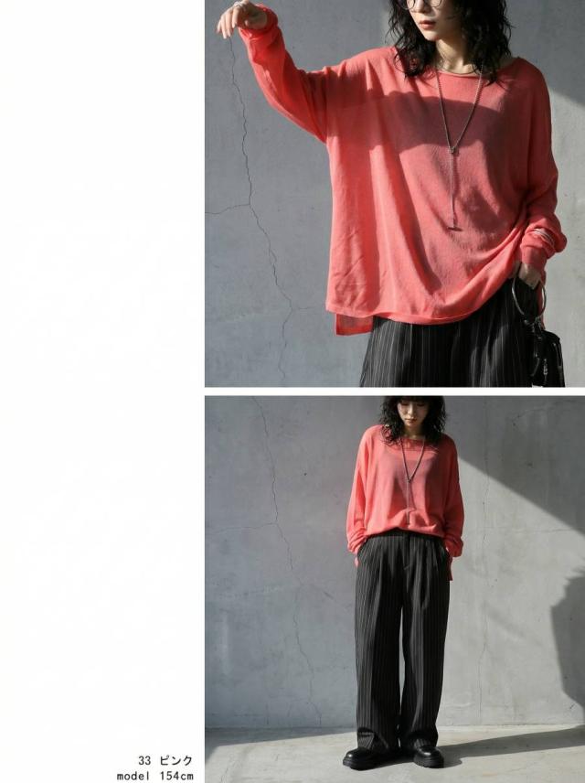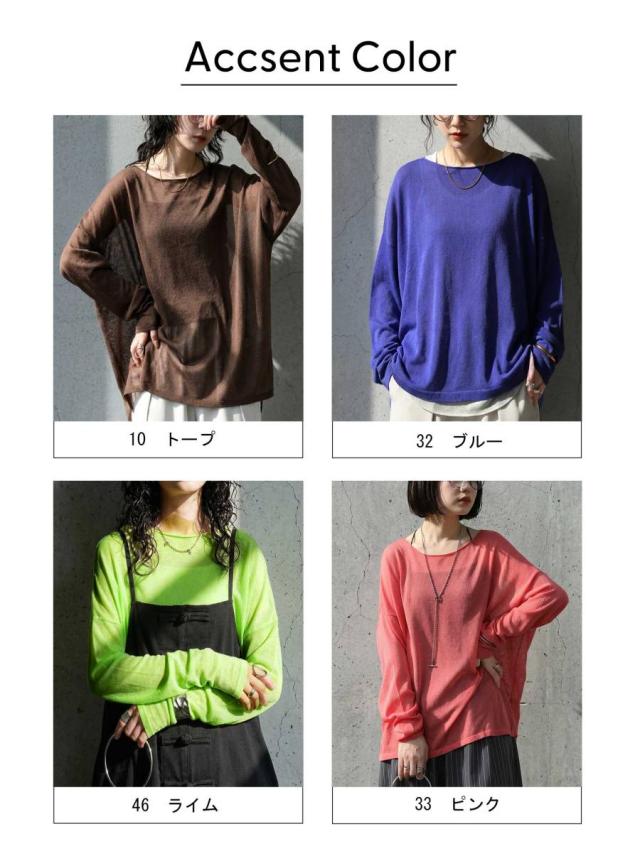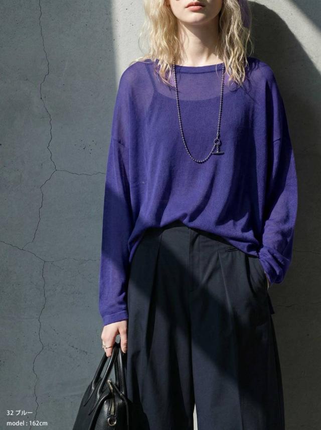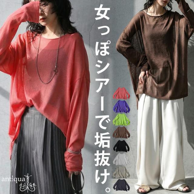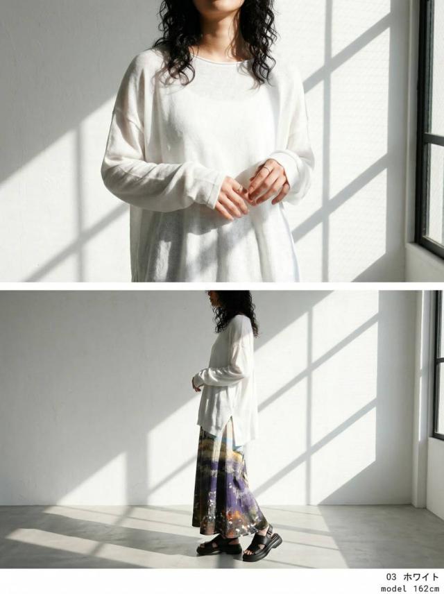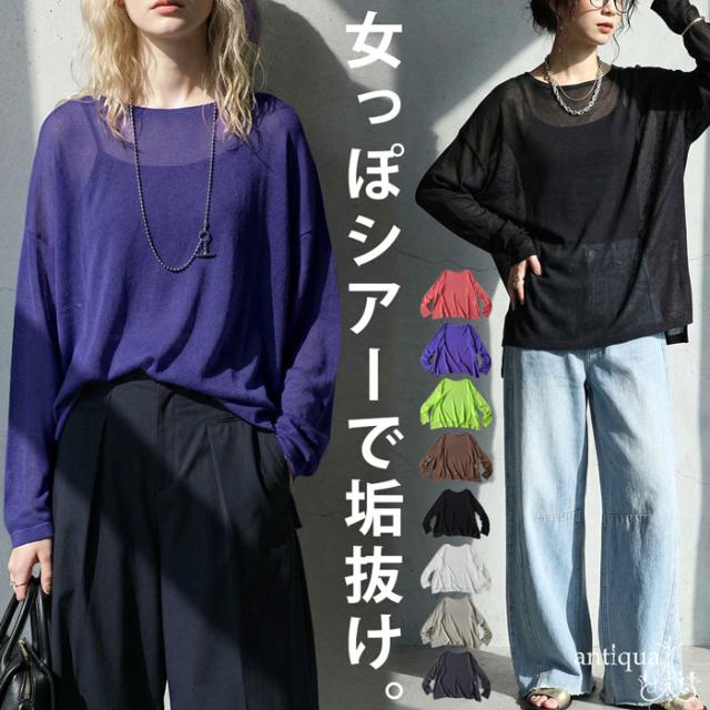 シアー ロンT レディース 長袖 ニット クルーネック 無地・(50)メール便可 春新作