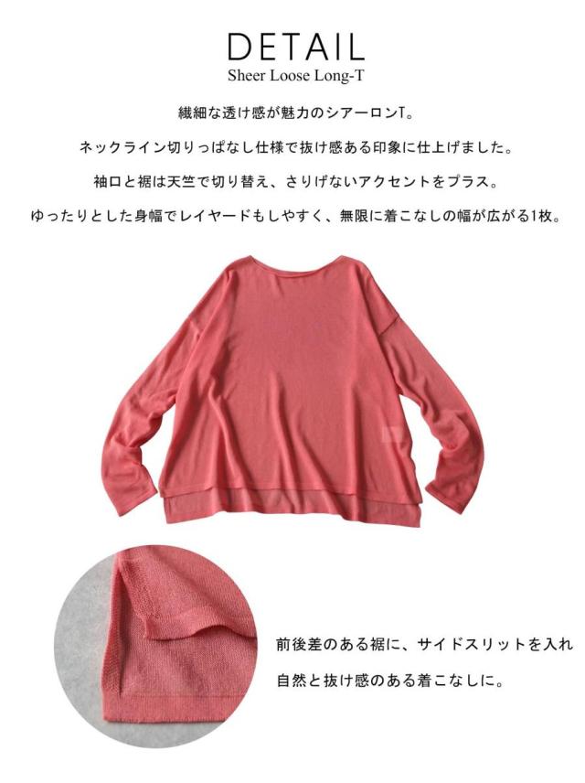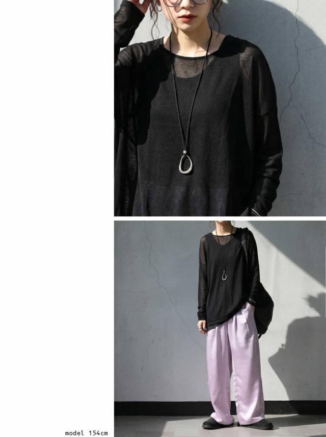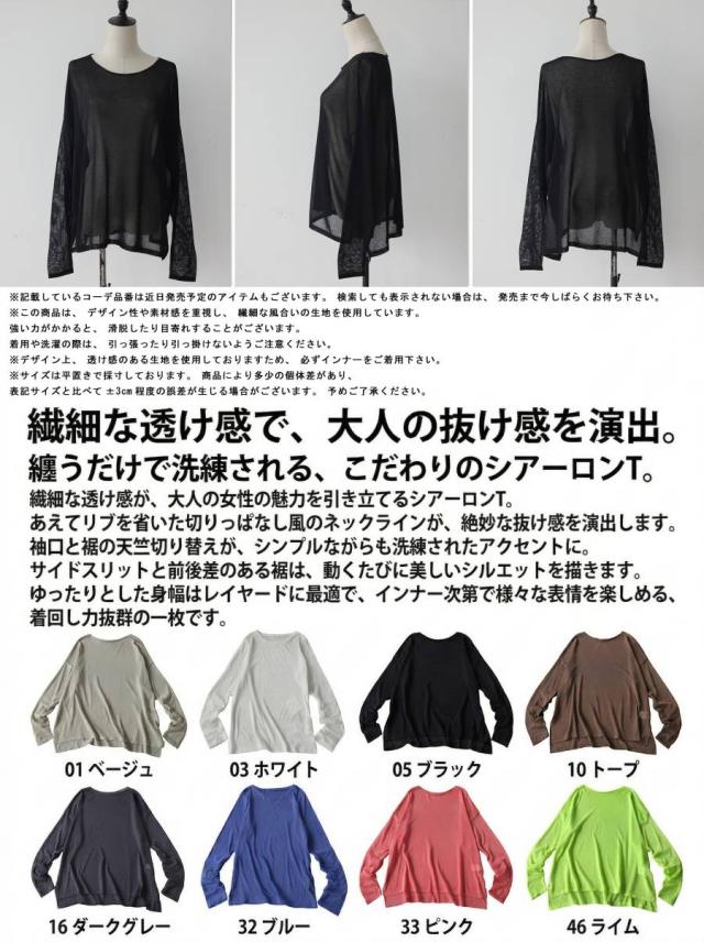 pn-00611 トップス カットソー Tシャツ 薄手 レイヤード 重ね着 インナー 体型カバー 透け ゆったり サイドスリット シンプル モード カジュアル ナチュラル 切りっぱなし