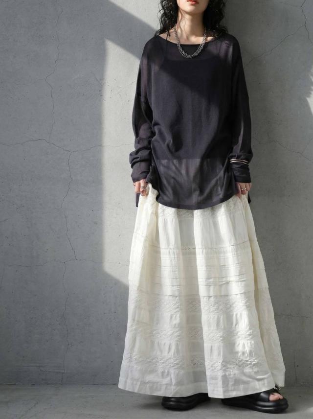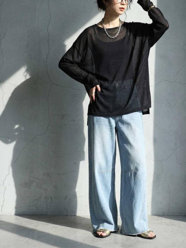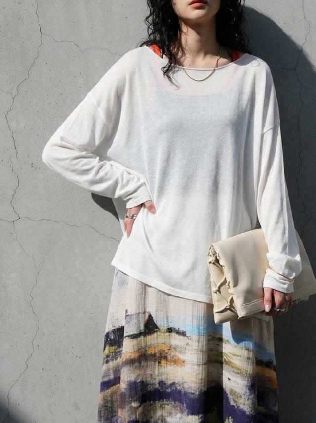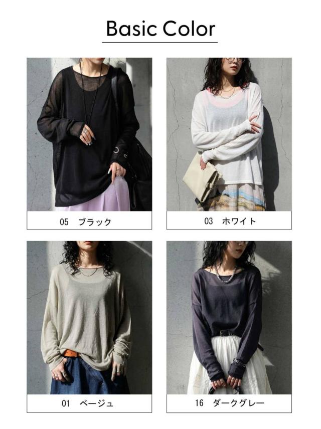 細かな編み地によるほんのり透ける質感がコーディネートに軽さを与え、ロングシーズン活躍します。