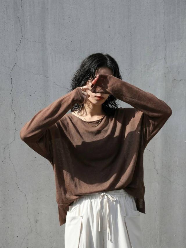 細い糸で編み立てた軽やかな素材が魅力のシアートップスです。
