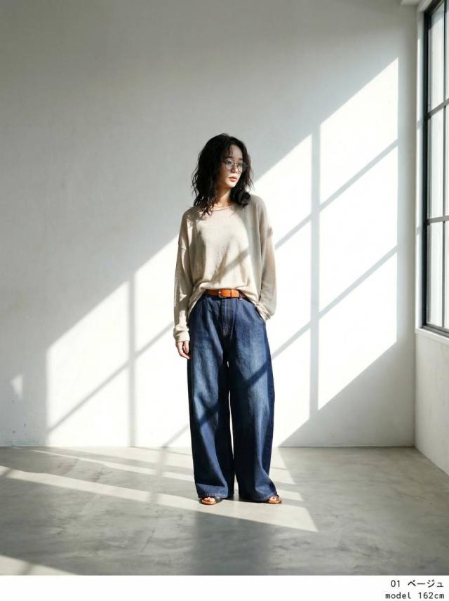 身幅を広めに取ったワイドな形状で体型カバーもしやすく、ドレープ感が大人らしい雰囲気を演出します。