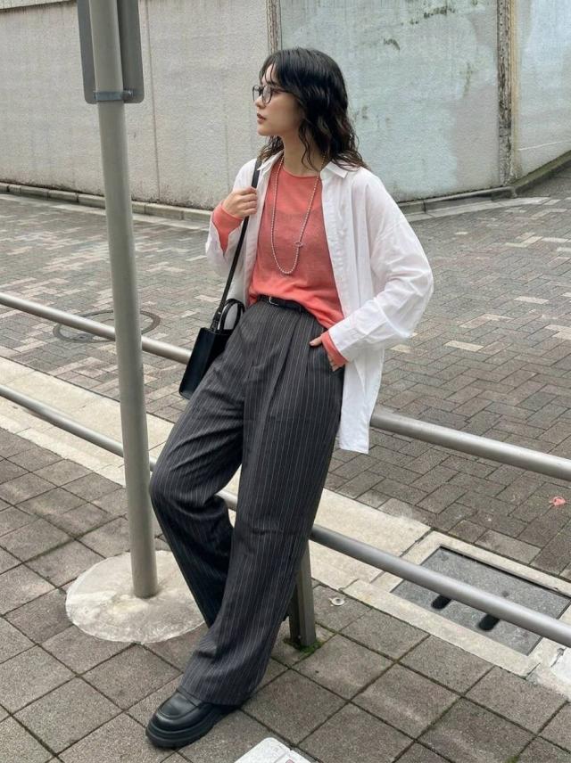 柄のないシンプルな無地デザインだから、インナー次第でレイヤードスタイルを楽しめるのも魅力です。