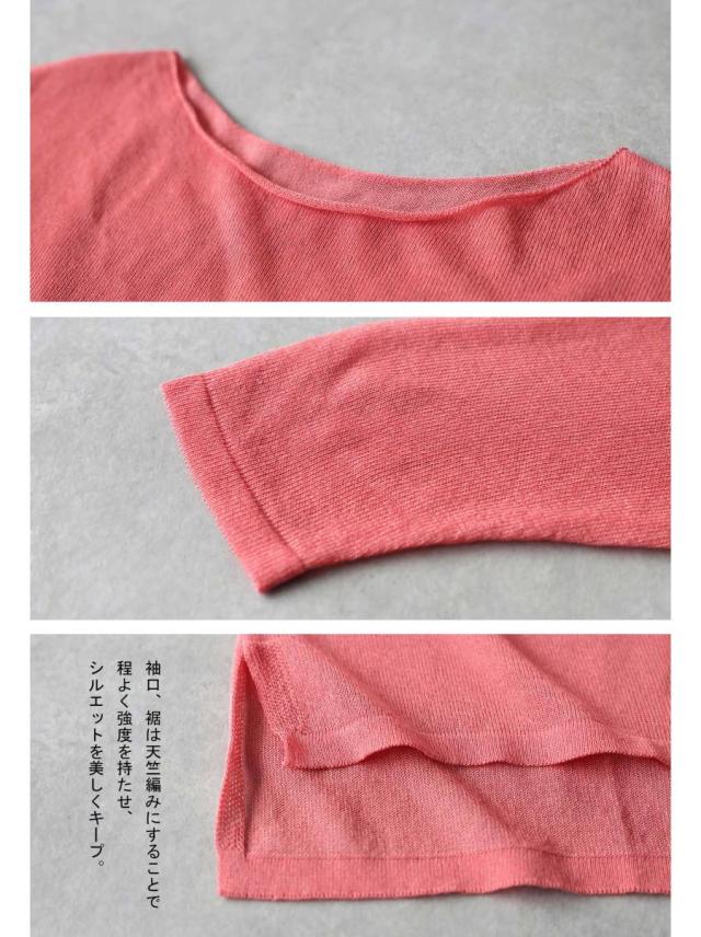 ネックライン(クルーネック)はあえてリブを付けず切りっぱなし仕様にすることで、ラフで抜け感のある印象に仕上げました。