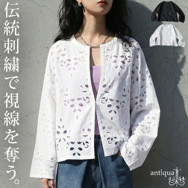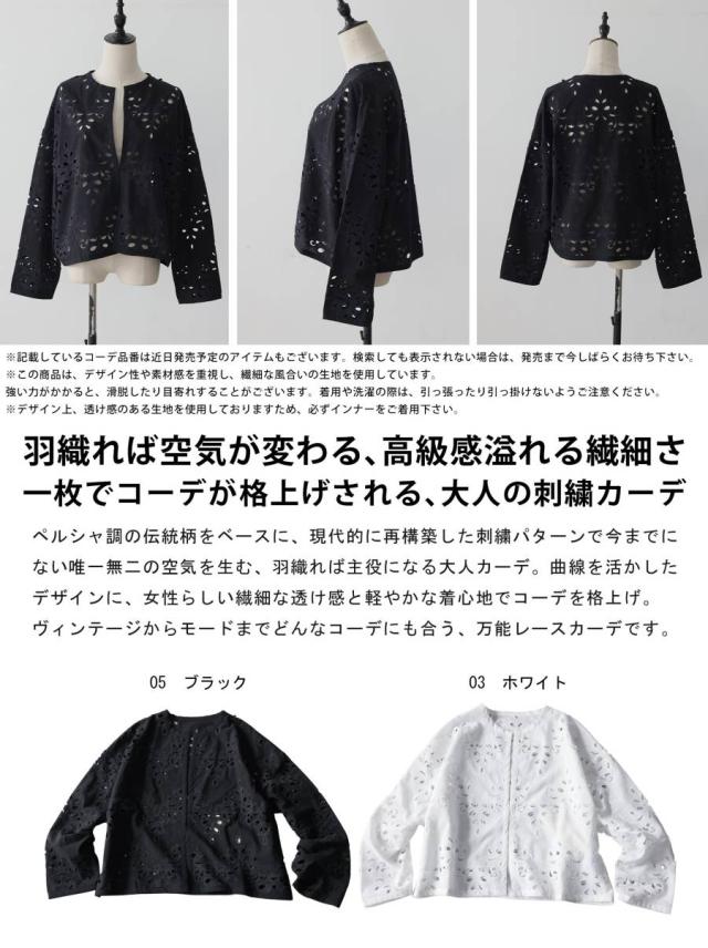 刺繍 レース カーディガン レディース 長袖 送料無料・(80)メール便可 春新作