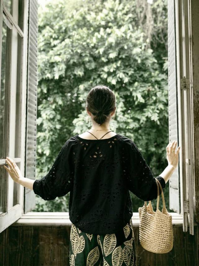 綿混素材ならではの柔らかさと通気性で、透け感のあるシアーな表情が上品でナチュラルな印象に。