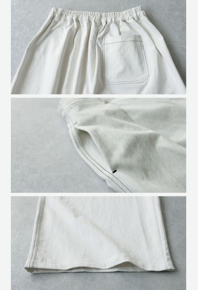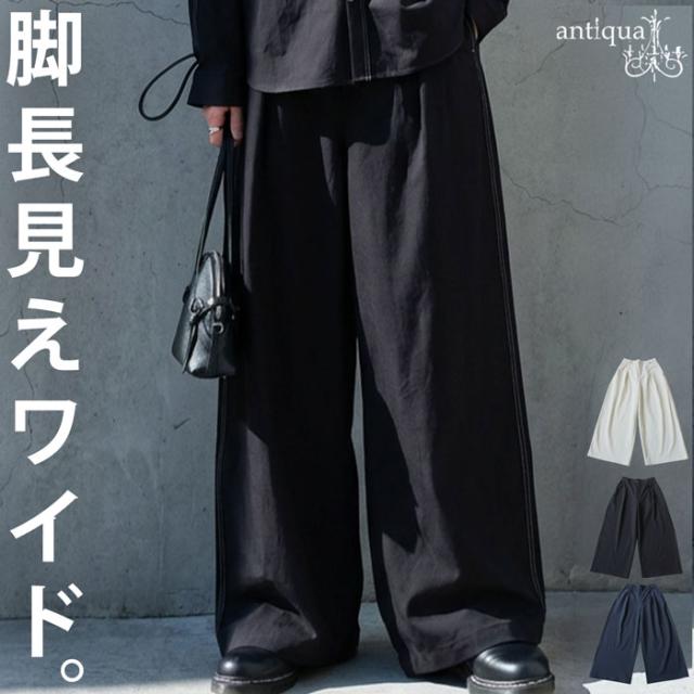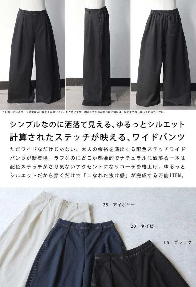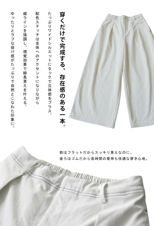 ストンと落ちるフォルムが美しい無地デザインに、印象的な配色ステッチを施したデザインパンツです。