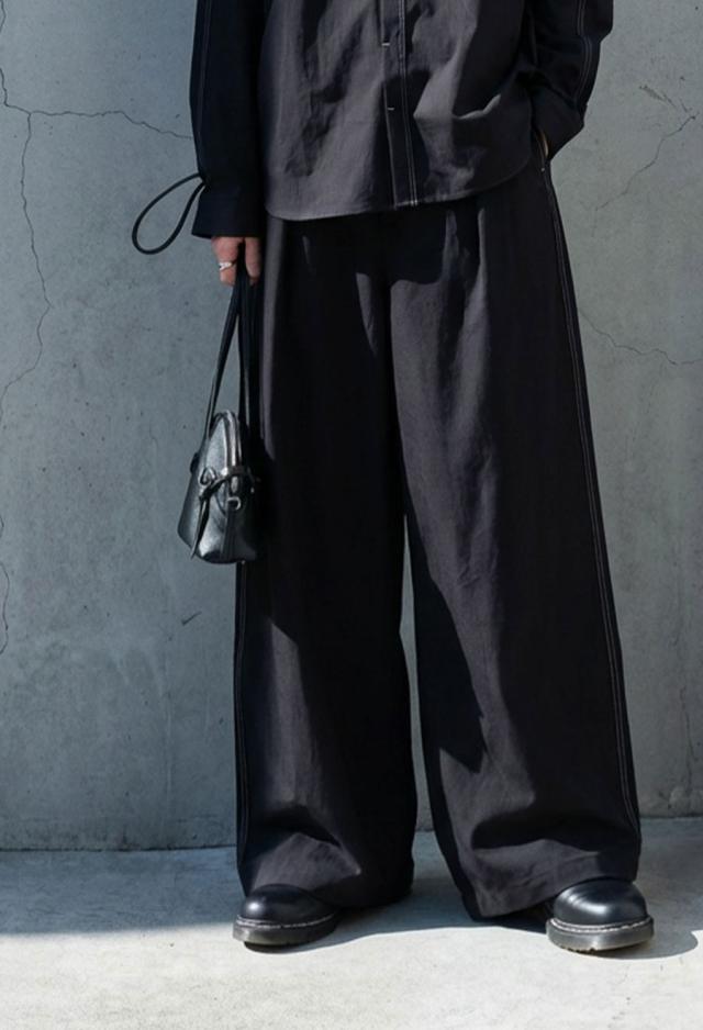 zk-00254z ボトムス ロングパンツ ステッチ ウエストゴム セットアップ ゆったり 体型カバー シワになりにくい 型崩れしにくい きれいめ モード 脚長効果 ベルトループ付き ユニセックス