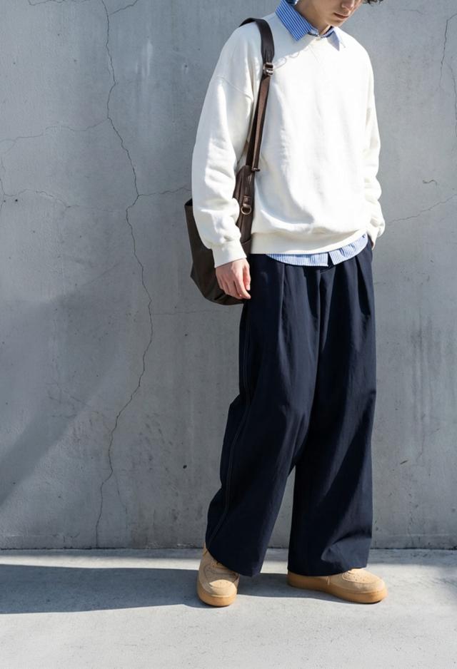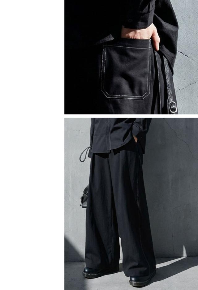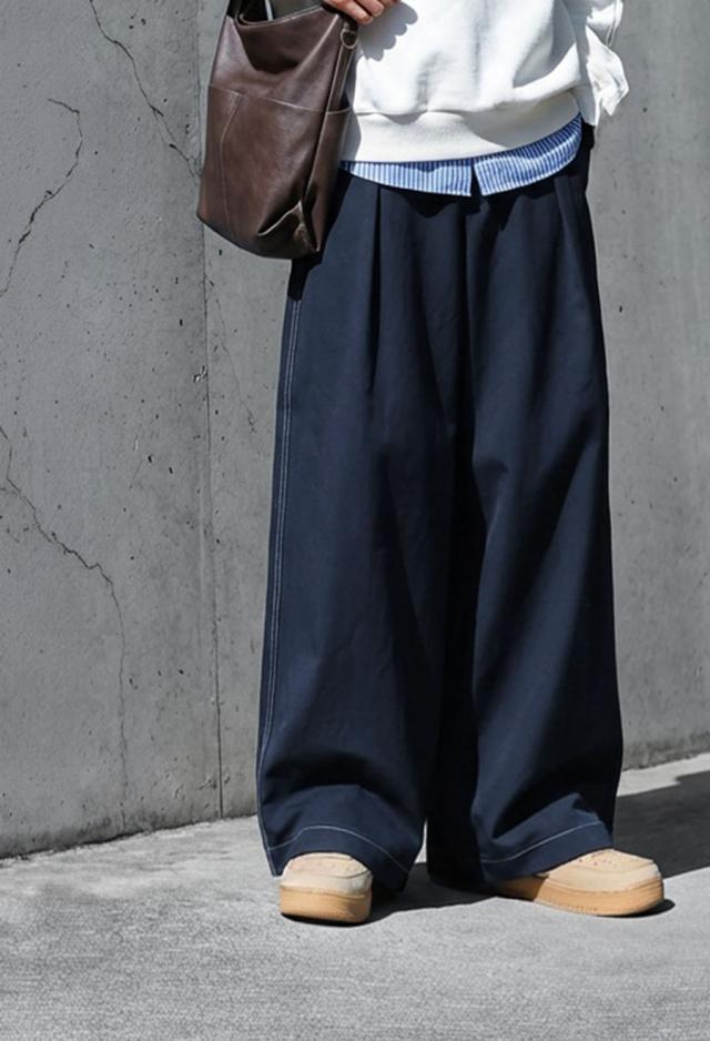 配色ステッチ ワイドパンツ メンズ ロング 無地 送料無料・メール便不可 春新作