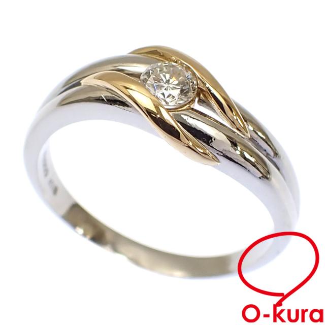 中古 ダイヤモンド リング Pt900 K18YG 18号 0.24ct 5.1g 指輪 プラチナ 750 18金 イエローゴールド レディース メンズ