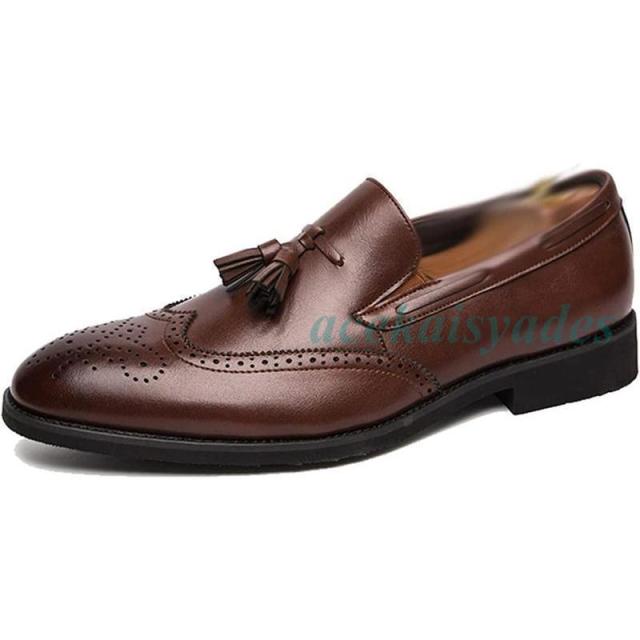 タッセルローファー ビジネスシューズ メンズ 革靴 おしゃれ ウィングチップ 穴飾り 通気性 スリッポン 紳士靴 カジュアル 歩きやすい