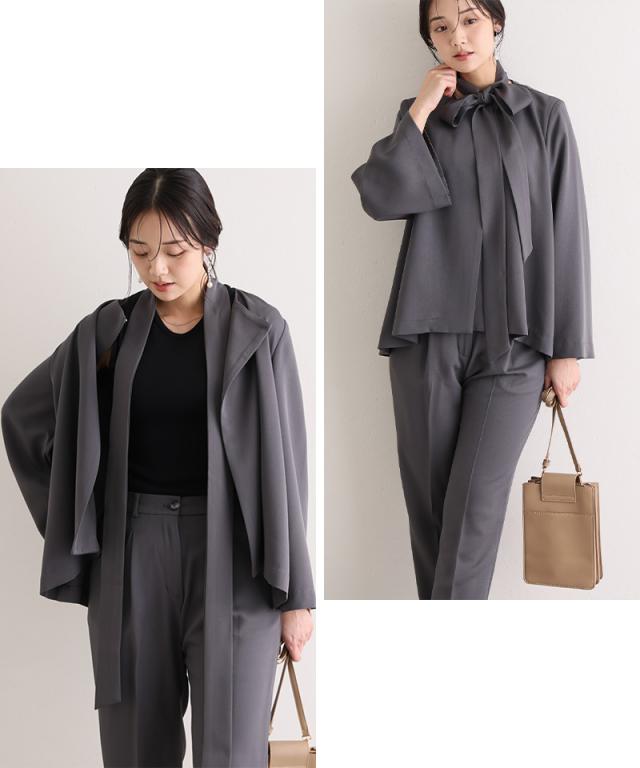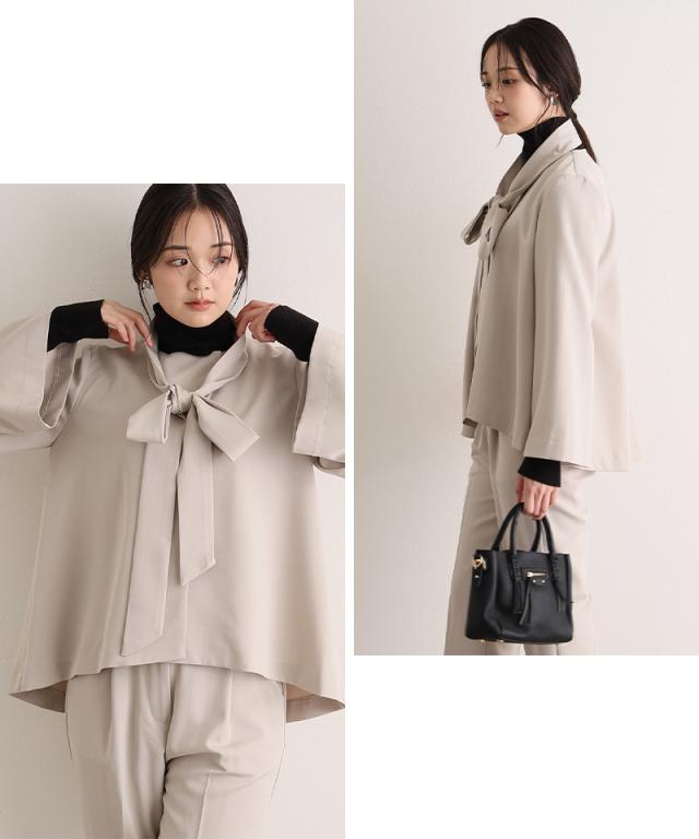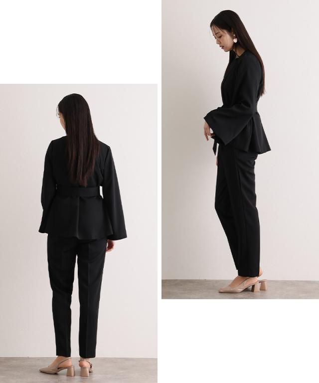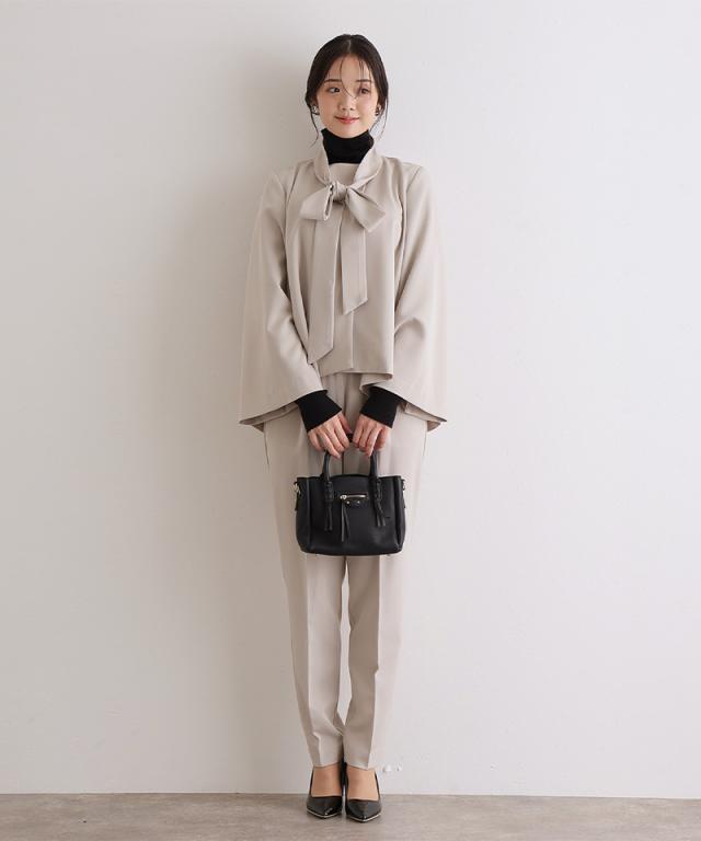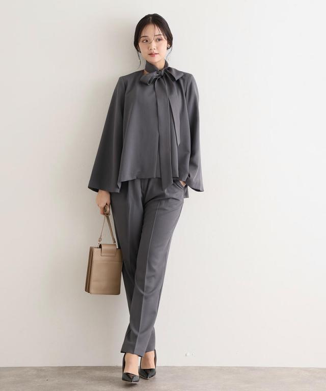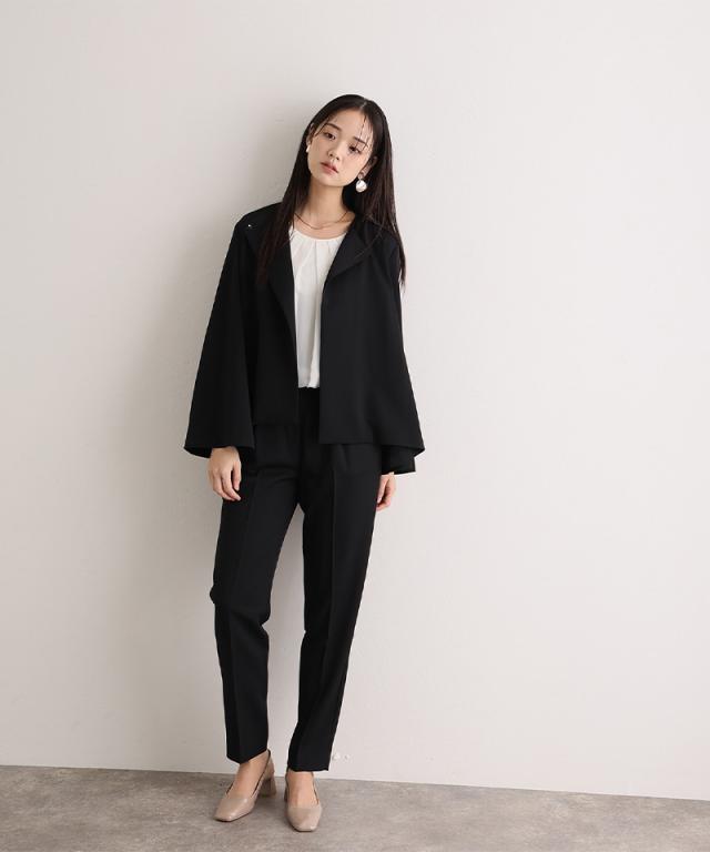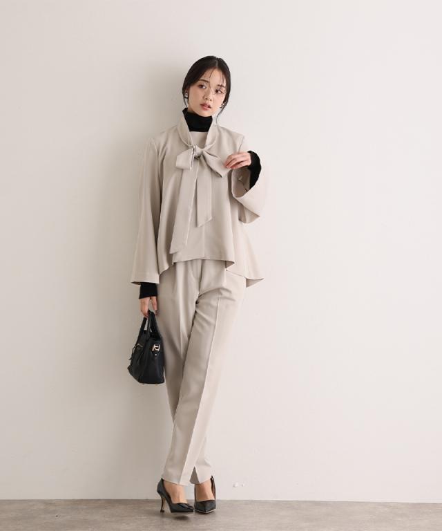 ふんわりと広がるフレアスリーブが優雅な印象を演出。フォーマルにもオフィスにも映える、万能な大人セットアップです。