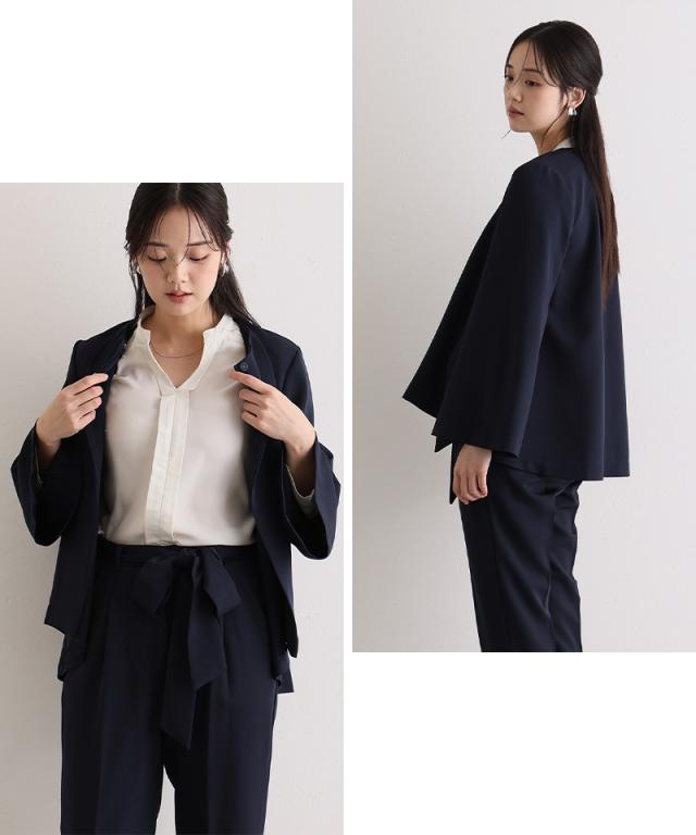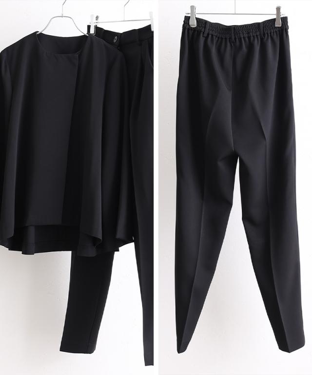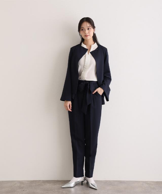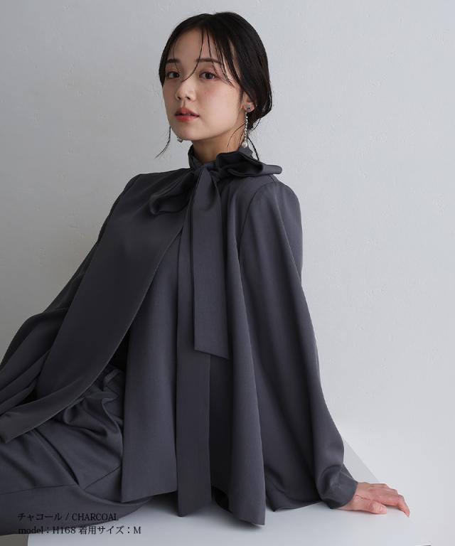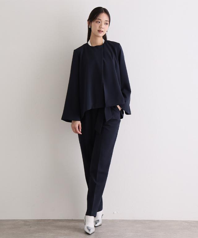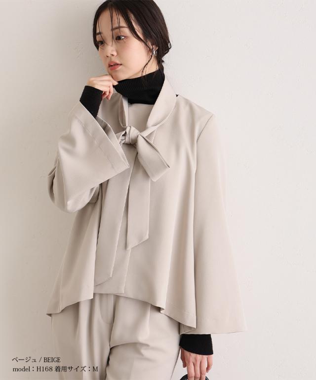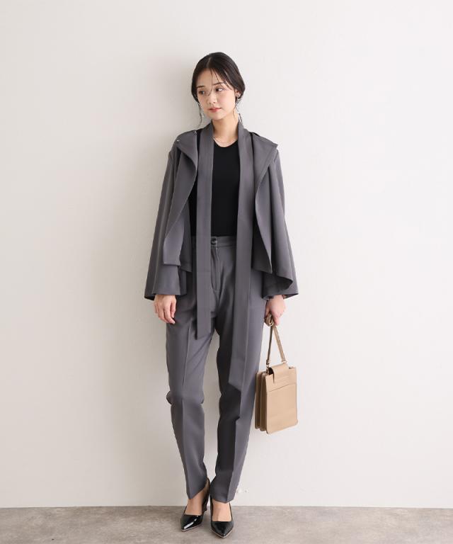 ふんわりと広がるフレアスリーブが優雅な印象を演出。フォーマルにもオフィスにも映える、万能な大人セットアップです。