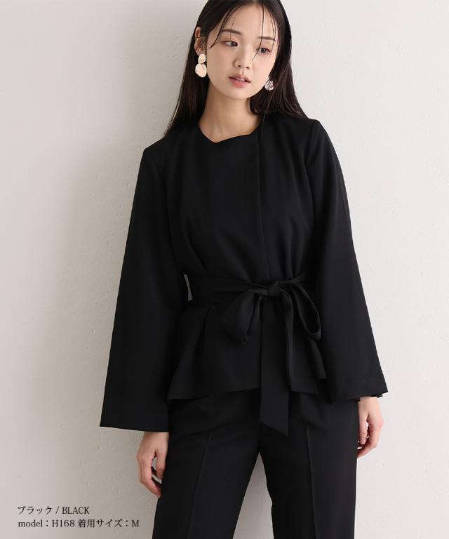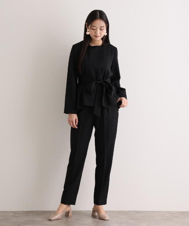 リボンペプラムセットアップスーツ【542252122】20代・30代・40代・50代・長袖・膝丈・セットアップ・スカート・パンツ・体型カバー・ジャケット・テーラード・スーツ・大きいサイズなど・即日発送・送料無料結婚式・婚活・披露宴・顔合わせ・二次会・同窓会・お呼ばれ・食事会・謝恩会・親族・七五三・お宮参り・冠婚葬祭・弔事・女子会・デート・入学式・卒業式・入園式・卒園式・ママ・マタニティー・セレモニー・セレブ・パーティー