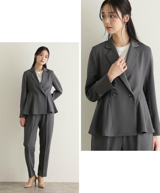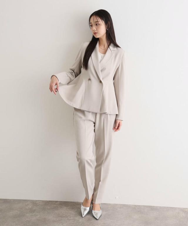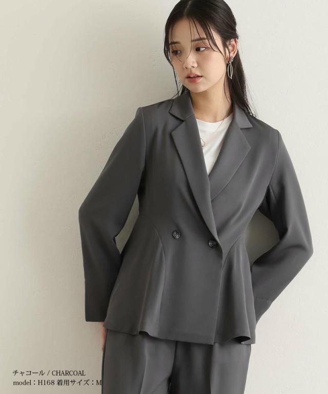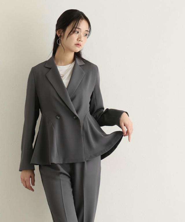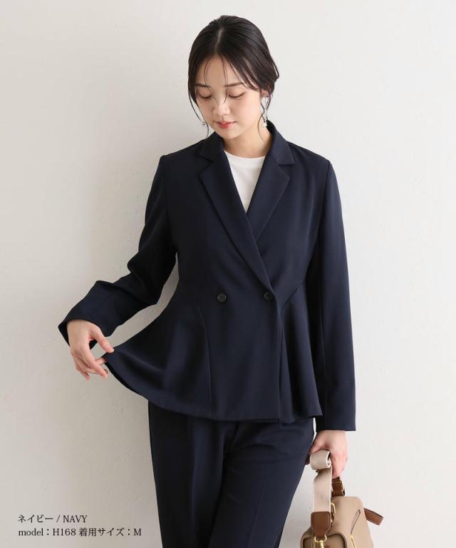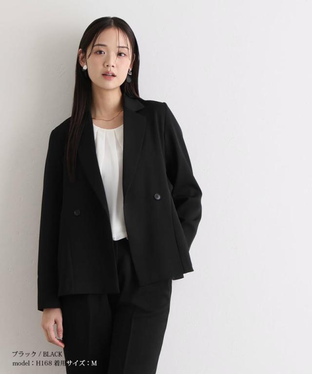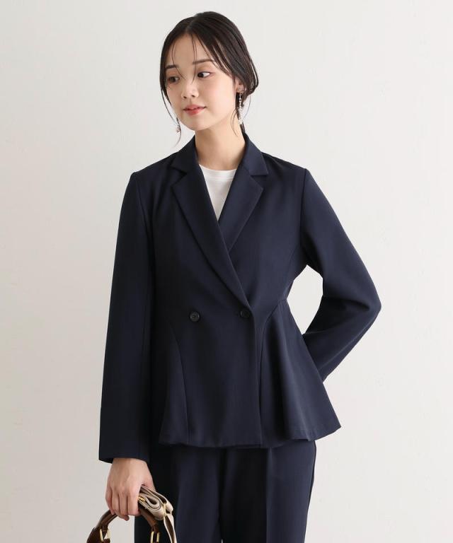 ダブルボタンのジャケットはほどよいウエストシェイプでスタイルアップ効果を発揮し、