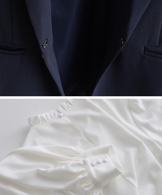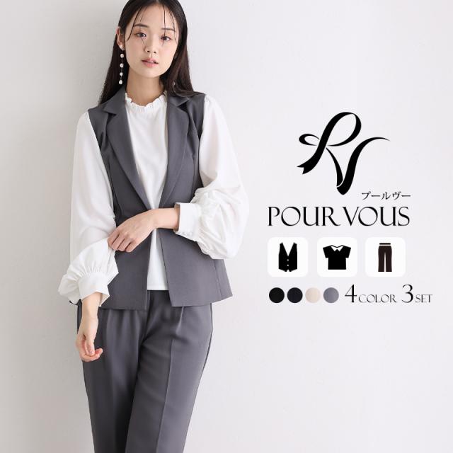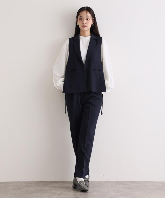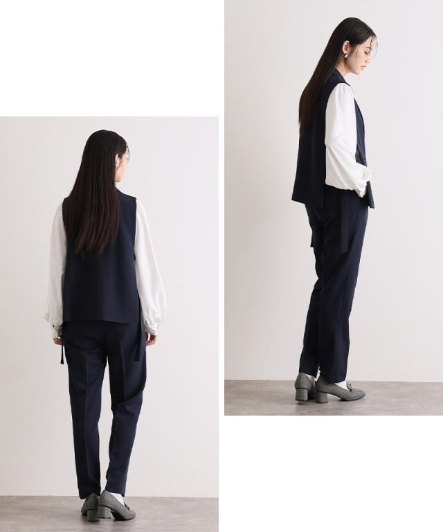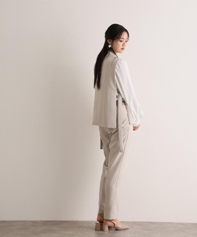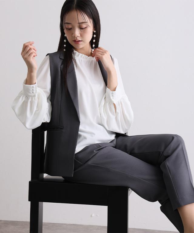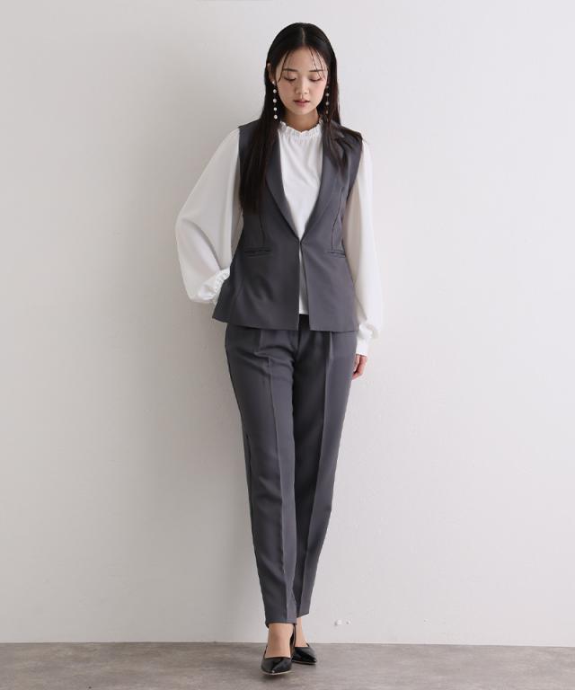 ジレ・パンツ・ブラウスのすっきり見えする上品な3点セット。