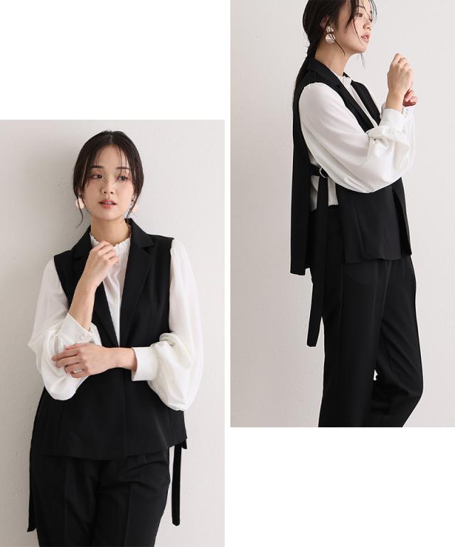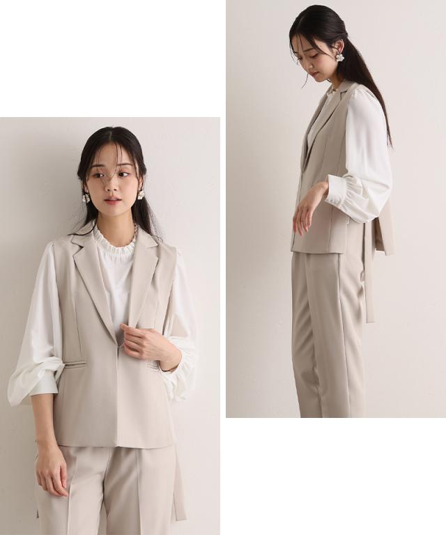 サイドベルトジレセットアップスーツ【544252122】20代・30代・40代・50代・長袖・膝丈・セットアップ・スカート・パンツ・体型カバー・ジャケット・テーラード・スーツ・大きいサイズなど・即日発送・送料無料結婚式・婚活・披露宴・顔合わせ・二次会・同窓会・お呼ばれ・食事会・謝恩会・親族・七五三・お宮参り・冠婚葬祭・弔事・女子会・デート・入学式・卒業式・入園式・卒園式・ママ・マタニティー・セレモニー・セレブ・パーティー
