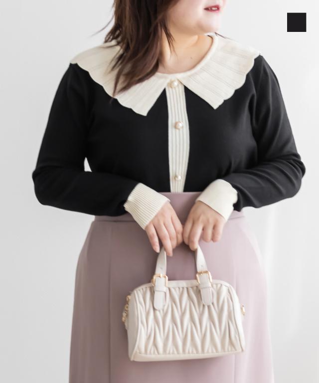 大きいサイズ/レディース/3L/4L/配色衿ニットプルオーバー
