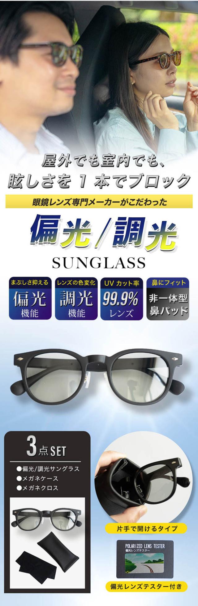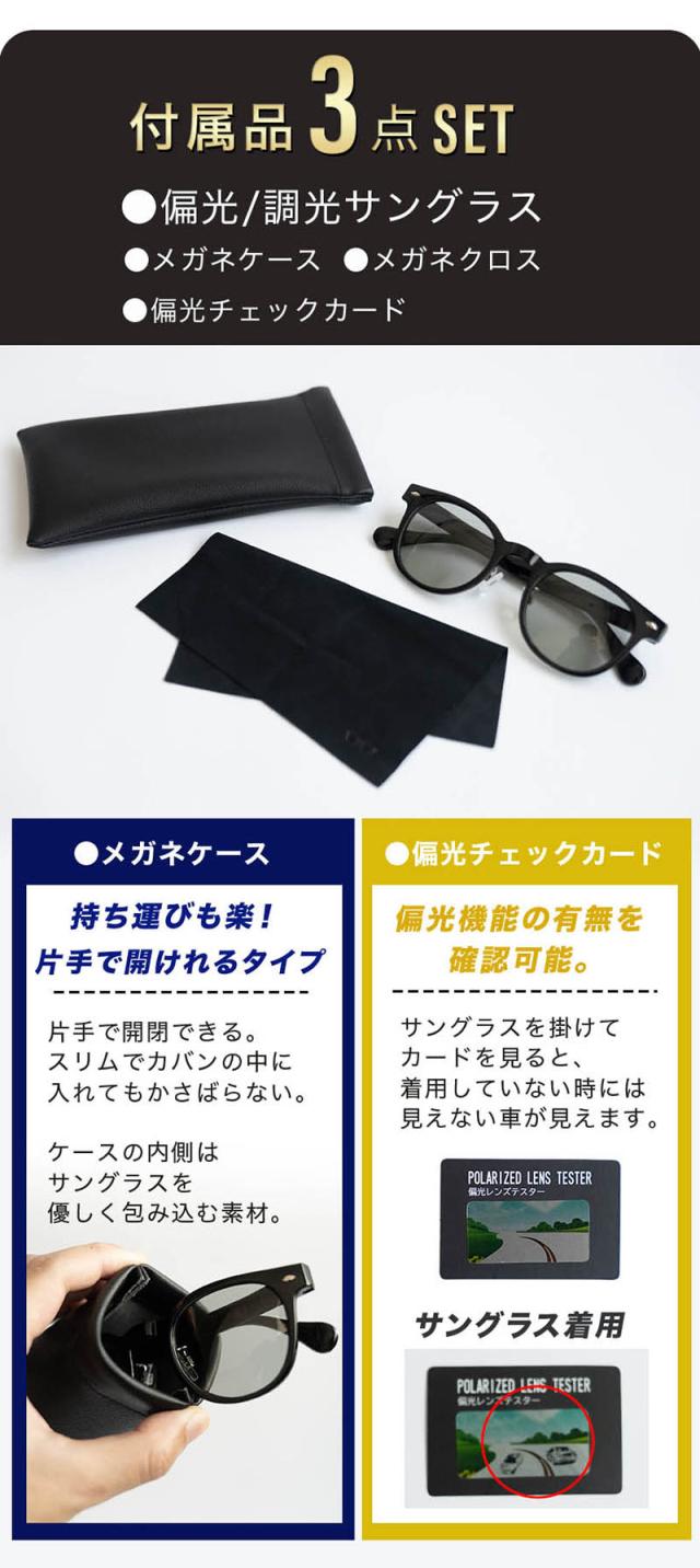 セット内容: 偏光/調光サングラス、メガネケース、メガネクロス