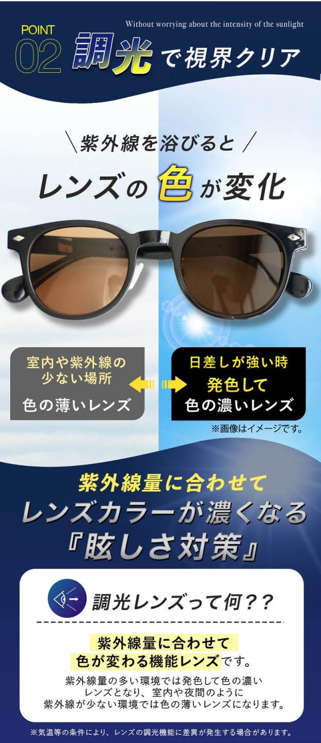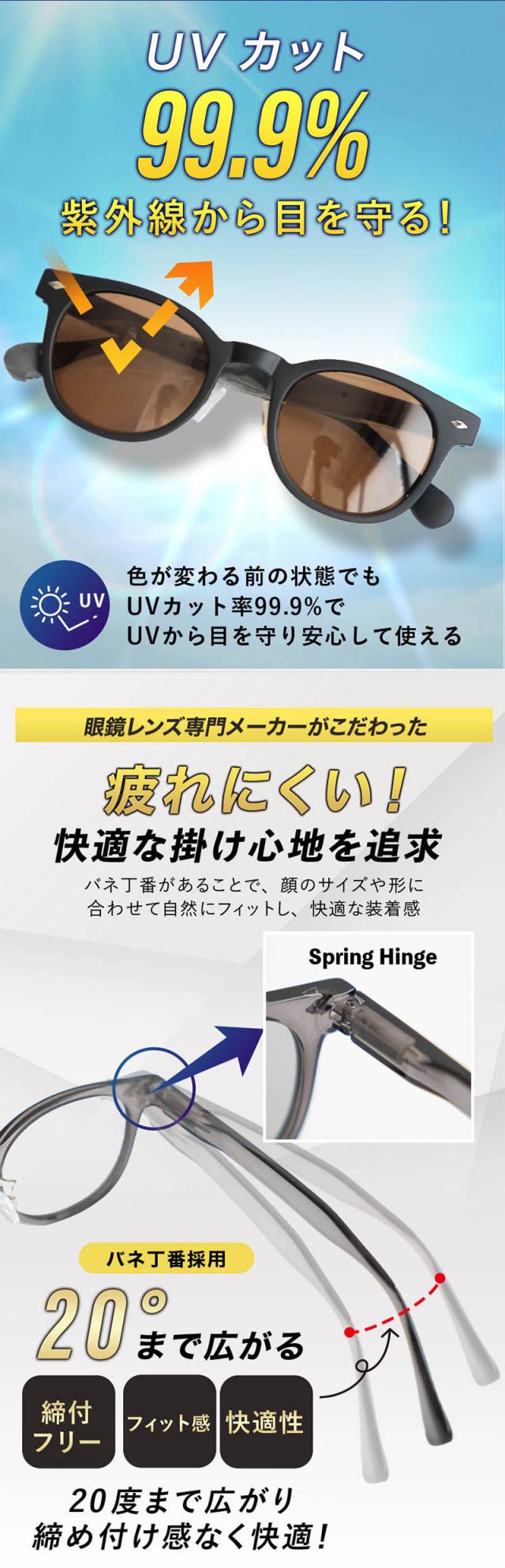 色が変わる前の状態でもUVカット率99.9%でUVから目を守り安心して使える◎ 疲れにくい快適な掛け心地を追求!