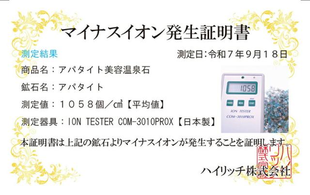 *アパタイトは燐灰石(りんかいせき)を主成分とする鉱物で、トルマリンの数10倍〜100倍ものマイナスイオンを発生させるとされる希少なパワーストーンです。