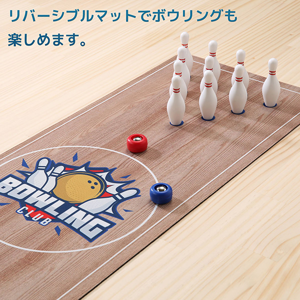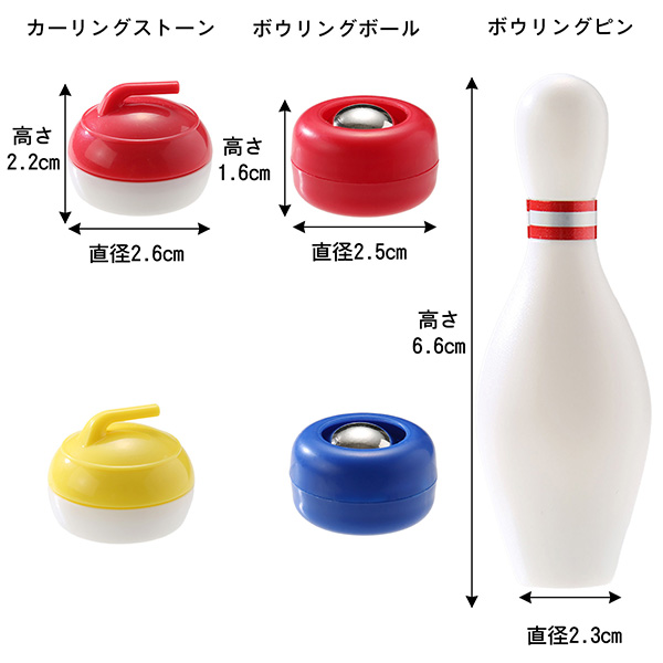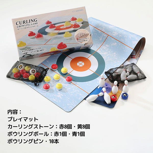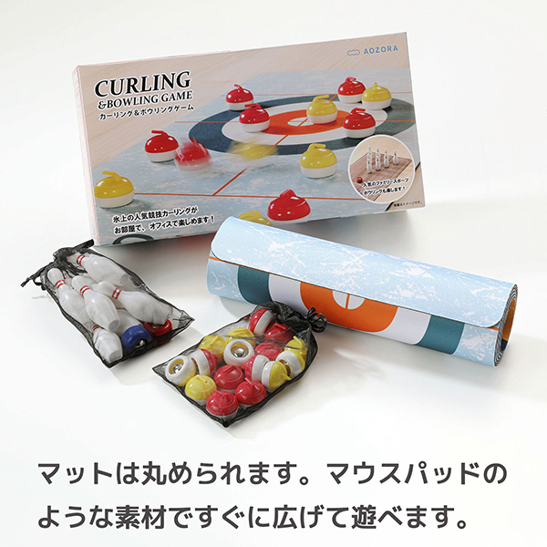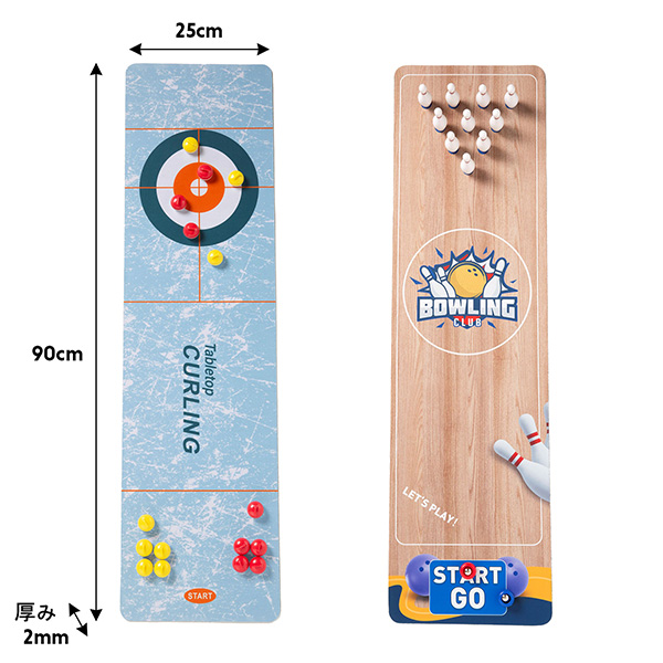 カーリングとボウリング両方が子供から大人まで楽しめるゲーム。マットは両面使い。