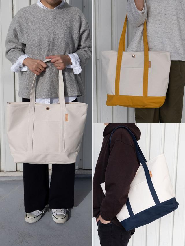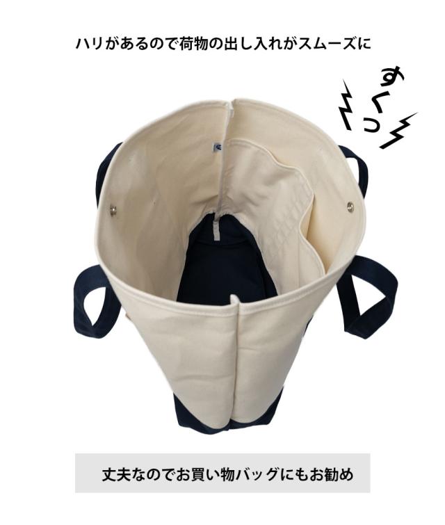 ■歴史と文化で育まれた繊維の街『岡山県倉敷市』で織られた8号帆布 と 1000年余りの歴史をもつかばんの産地『兵庫県豊岡市』の日本の技術を融合させたmade in Japan のオリジナルブランド『SPREAD スプレッド』のプロダクト。 ■綿を平織りで織り上げた丈夫で厚みがあり、適度な柔らかさを併せ持つバランスの取れた8号の帆布を使った、ベーシックなB4サイズのトートバッグです。適度な厚みなので完全とはいきませんが、荷物が入っていない状態であれば自立します。荷物の出し入れがしやすく持ちやすいコシと柔らかさがを併せ持った丈夫なバッグです。 ■ポケットが3つ配置されており、ペットボトルや財布などを収納することができます。スマホは前面ポケットに収まります。通勤通学から、ショッピング、ジム、ママバッグ等幅広く家族で使いまわしていただけます。持ち手は上着を着た状態で肩掛け可能な長さです。 ■開口部はボタン式。前面のボタン部分とサイドのタグはヌメ革を使用。使ううちに帆布とともにエイジングをお楽しみいただけます。 ■濡れた状態での摩擦等色移りにご注意ください。洗濯は不可。 |