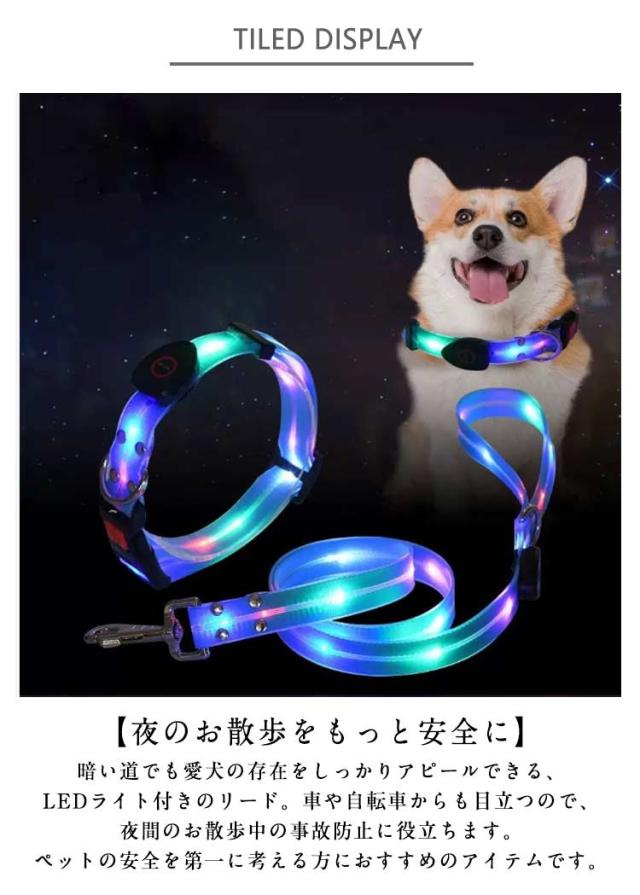 犬用 光る首輪 光るリード 小型犬 中型犬 大型犬 LEDリード 防水 LEDライト カラフルリード お散歩グッズ お散歩ひも 犬用品 ペット 照明 光るリード 犬レインボー ドッグリード 犬リード 安全リード ペット用リード 夜お散歩 安全 ペット用品