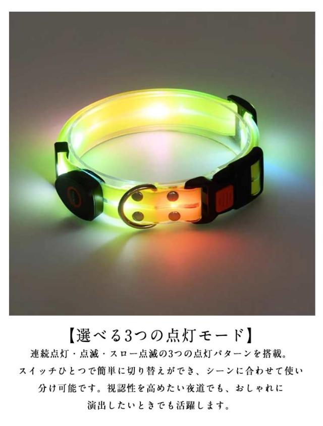 | サイズについての説明 | 首輪:15*50cm調整可能 【リード】サイズ:幅2.5CM 全長120CM 点灯時間:4時間 点灯モード:定常照明/高速点滅/低速点滅 ※サイズ計測には誤差が生じます。 |